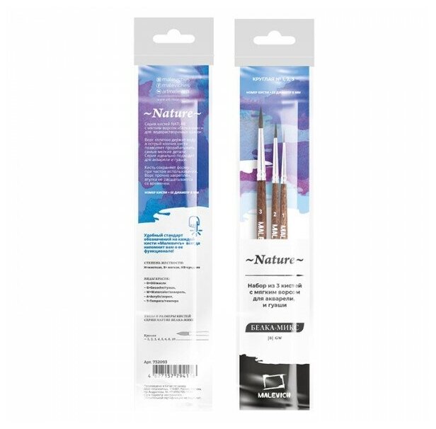 Кисть Малевичъ Набор кистей белка-микс (3шт.) Nature малевичъ