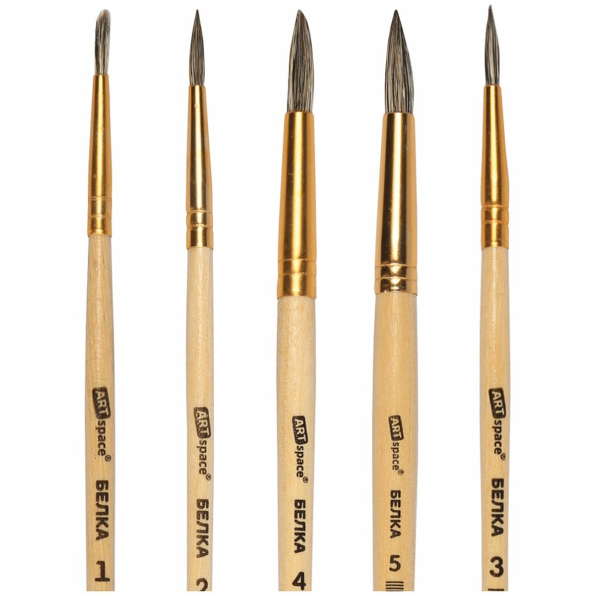 Спейс Набор кистей 5шт., белка, круглые, № 1, 2, 3, 4, 5, блистер sela25