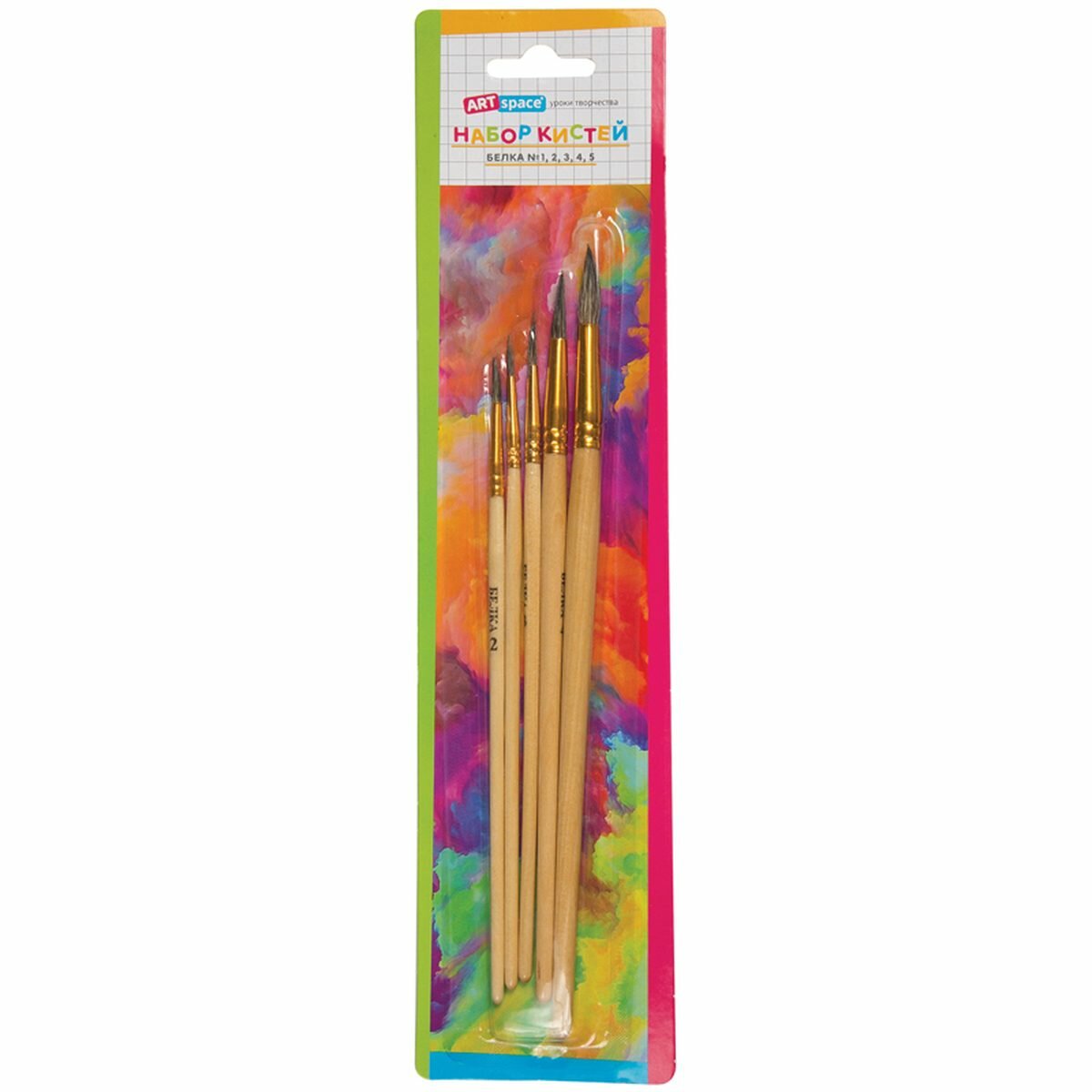 Набор кистей ArtSpace, белка, круглые №1,2,3,4,5, блистер, 5шт. (SB1-5_2388), 24 уп.