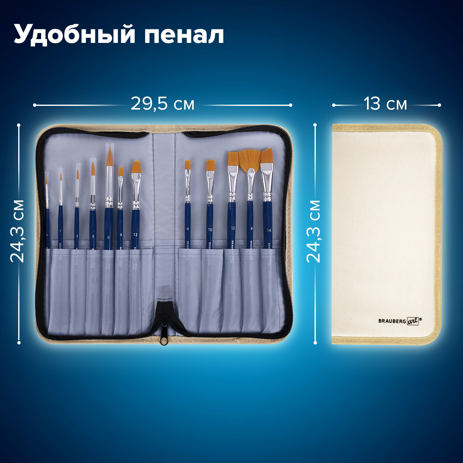 Кисти для рисования художественные набор 12 штук в пенале, синтетика, Brauberg Art Debut, 201042 интересное: