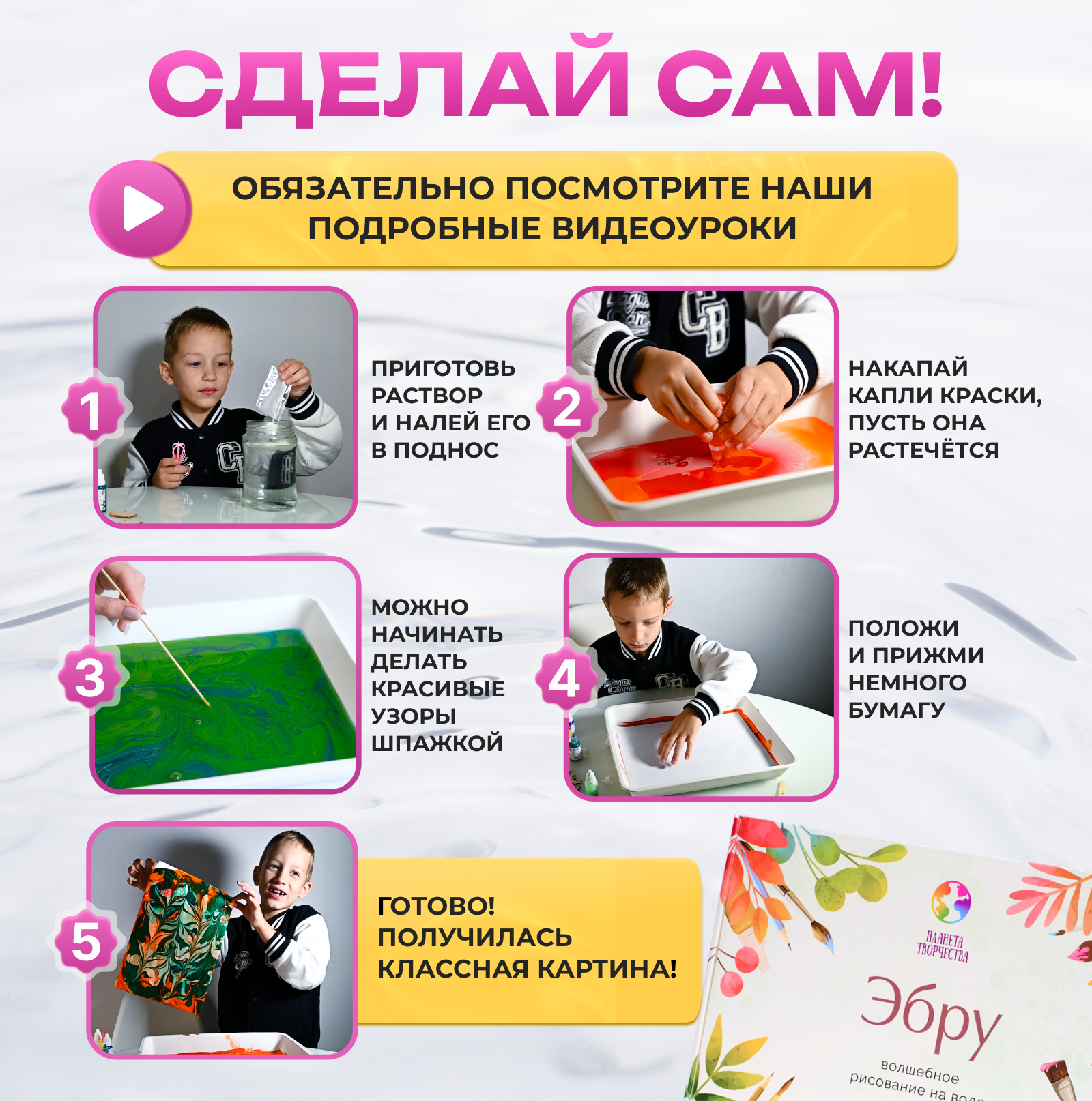 Набор для рисования на воде "Планета творчества" Эбру 7 цветов интересное: