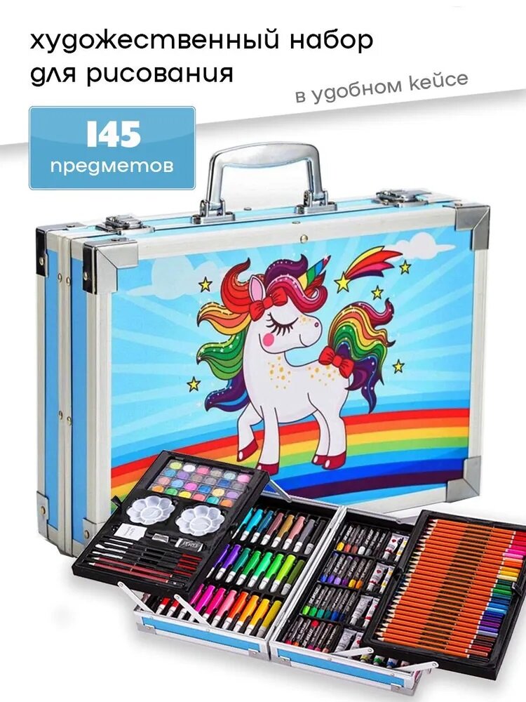 Набор для рисования и творчества "Чемоданчик юного художника" голубой единорог/ Голубой пони интересное: