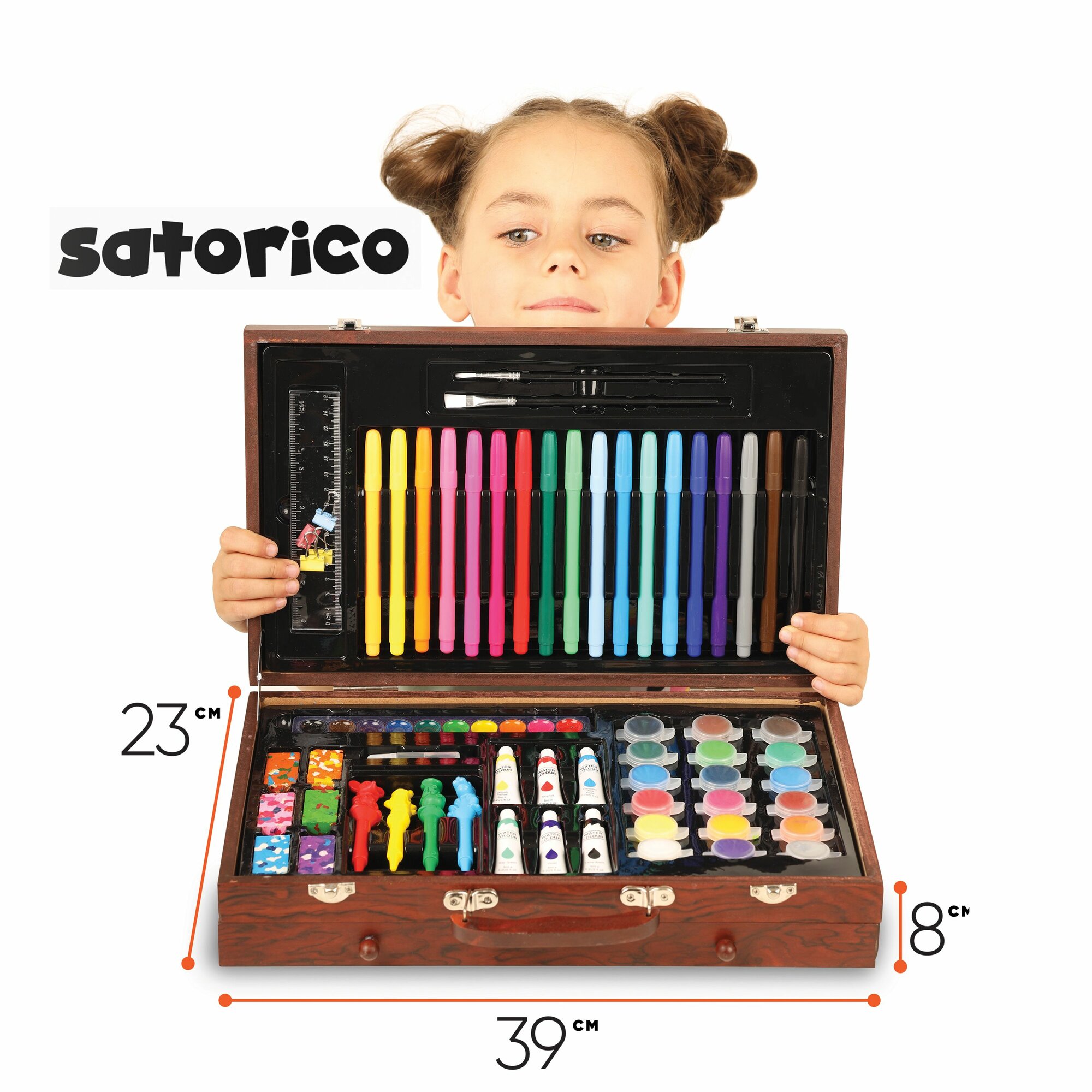 | Комплектация | 1 линейка, 2 кисточки, 185 фломастеров, 18 гуашь, 6 акриловых красок в тюбиках, 2 простых карандаша, 1 точилка, 2 ластика,16 пастельных карандашей, 16 цветных карандашей, 16 восковых цветных мелков, 4 восковых мелка, 6 камуфляжных восковых блока, 10 сухой акварели, 4 скрепки. |