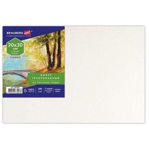 Купить Холст на картоне Brauberg МДФ, 20х30 см, 280 г/м2, грунтованный, хлопок, Art Classic (192184)