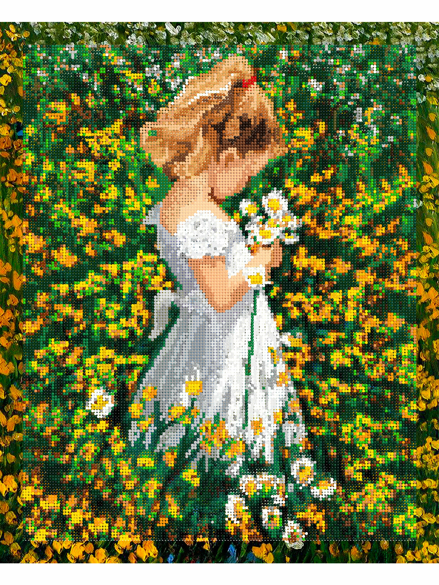 | Дополнительная информация | Откройте коробку и достаньте всё содержимое набора, разложите перед собой. Отсыпьте немного страз одного цвета в лоток. Снимите небольшой участок защитной пленки с того места на холсте, который планируете обклеить. Захватите стилусом немного сухого клея из набора, затем этим же концом стилуса коснитесь верхней части стразы. Аккуратно перенесите стразу на поверхность холста в соответствии с номером и цветом. Выкладывайте стразы как можно ближе друг к другу. Если неверно установили стразу, то её можно убрать с холста с помощью пинцета. |