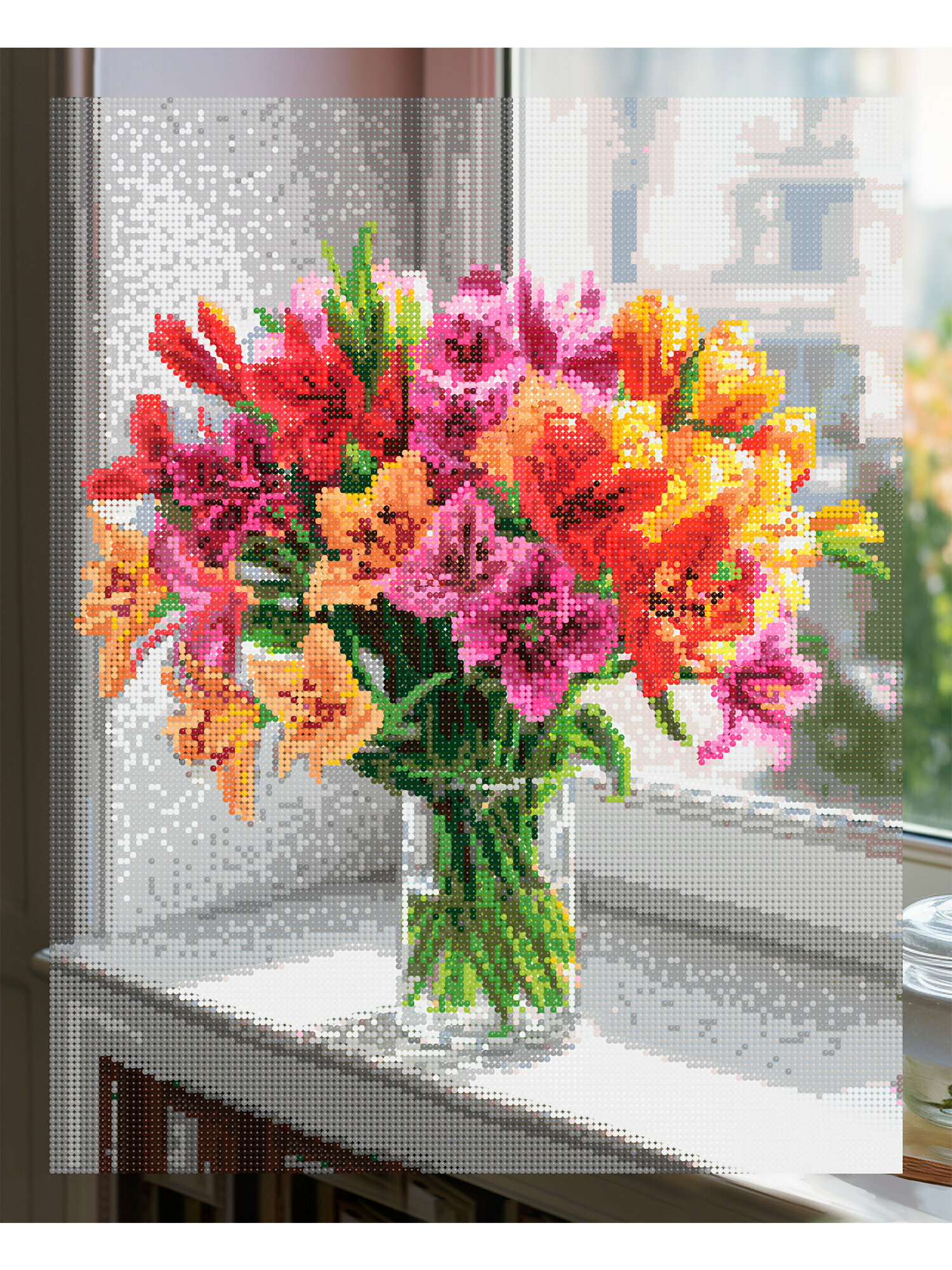 Рыжий кот Набор алмазной вышивки Пышный букет у окна (ACJ009) 60х50 см
