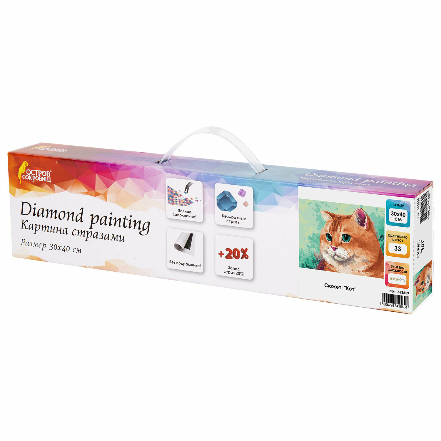 Купить Алмазная мозаика без подрамника 30x40 см, картина стразами Кот, набор для рукоделия и творчества для детей и взрослых, Остров Сокровищ, 663859