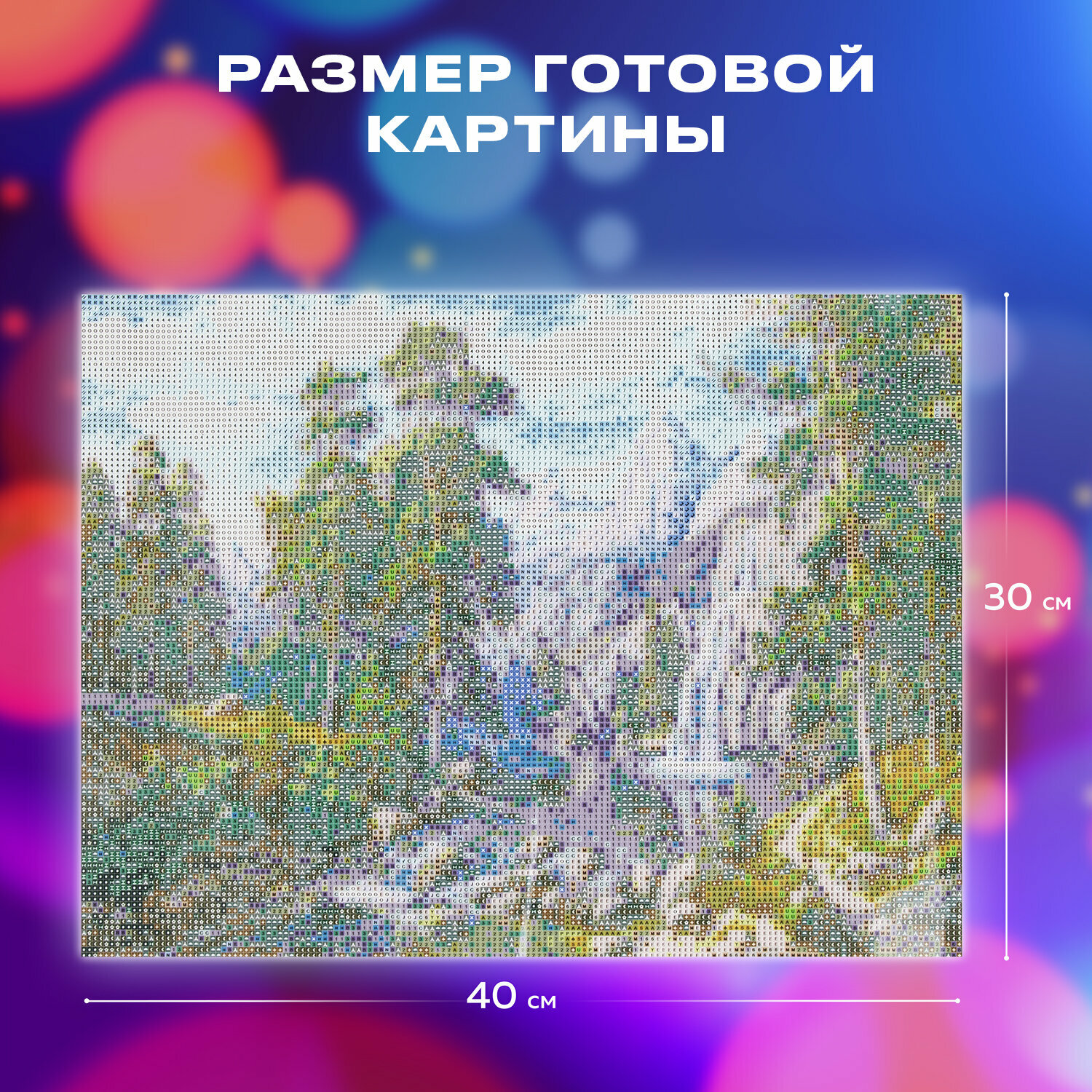 Алмазная мозаика без подрамника 40x50 см, картина стразами Горная речка, набор для рукоделия, творчества для детей и взрослых, Остров Сокровищ, 663867