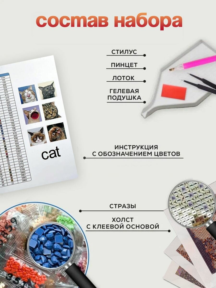 Алмазная мозаика набор Мемные коты 6 в 1 интересное: