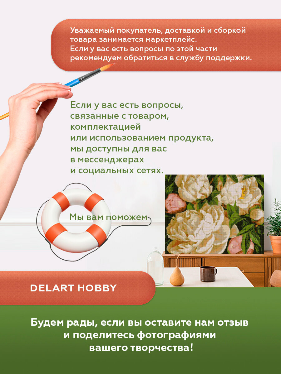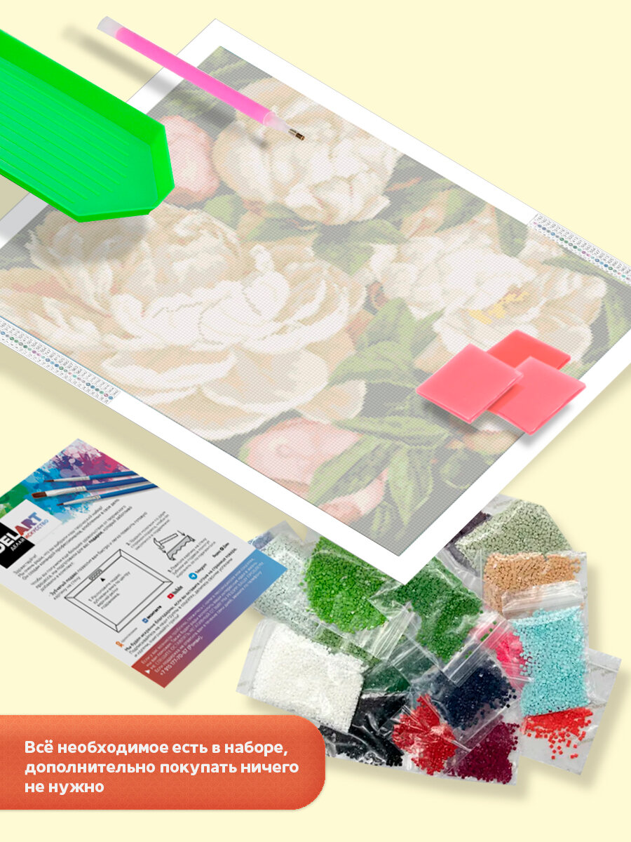 Алмазная мозаика без подрамника 40х50 см Белые пионы. Алмазная вышивка. Картина стразами интересное: