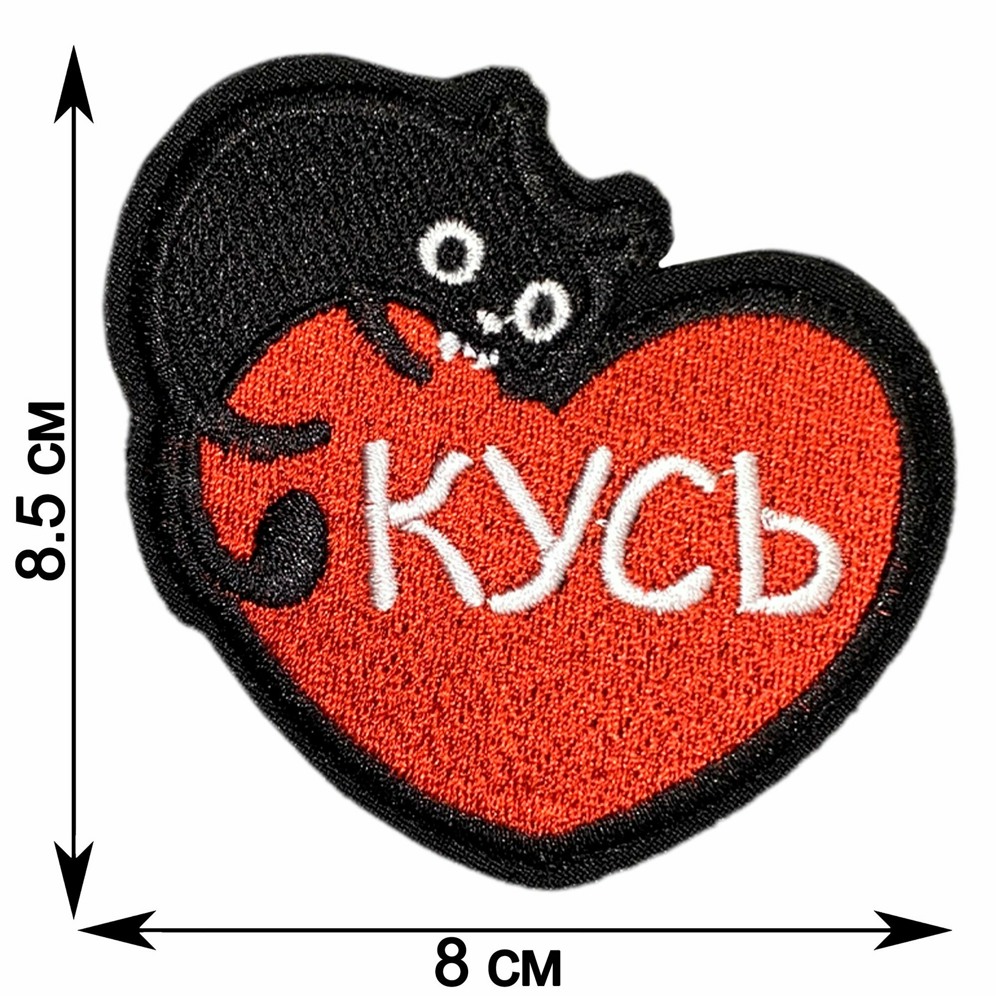Купить Нашивка, шеврон, патч (patch) Кот на сердце Кусь, размер 8,5*8 см