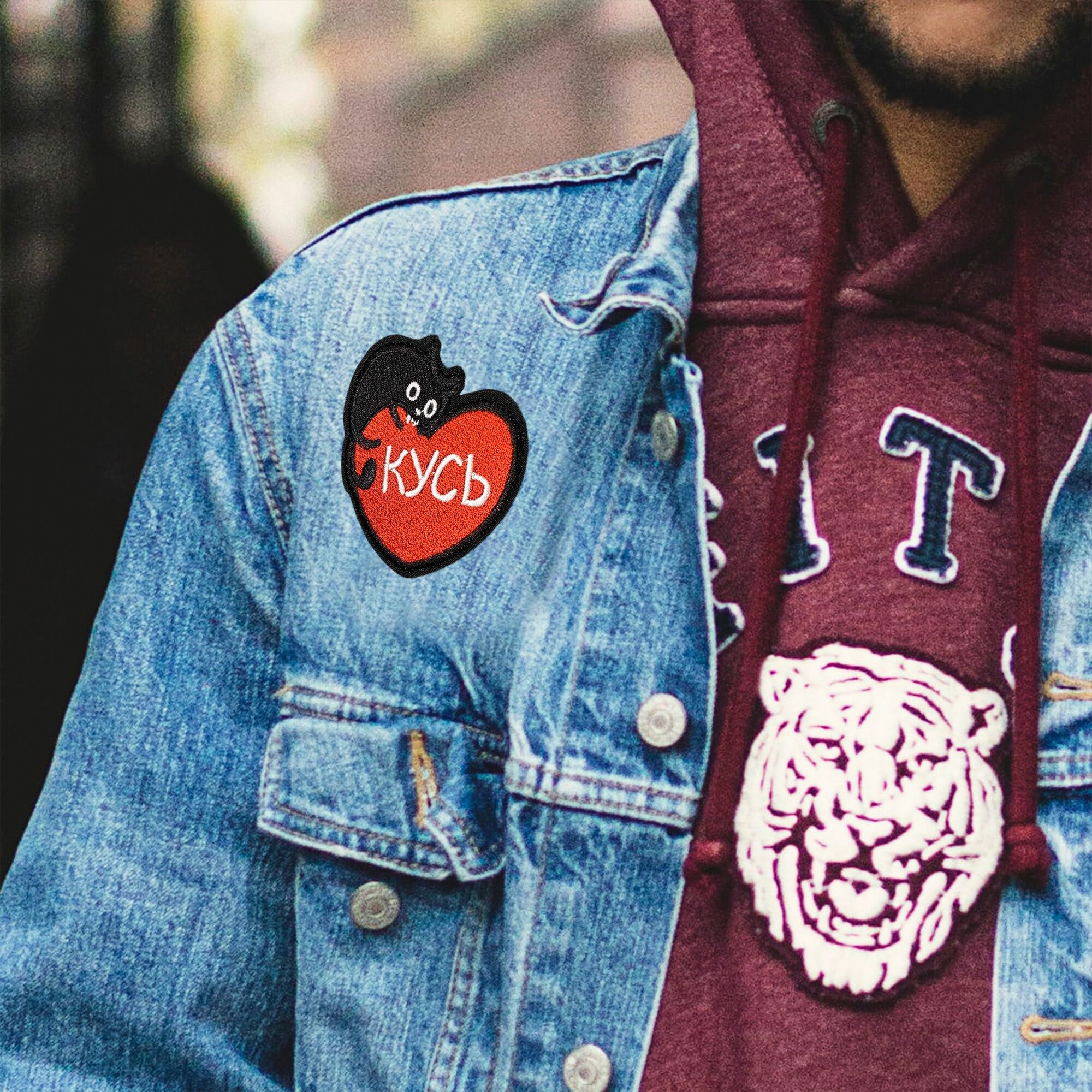 СохранитьНашивка, шеврон, патч (patch) Кот на сердце Кусь, размер 8,5*8 см интересное: