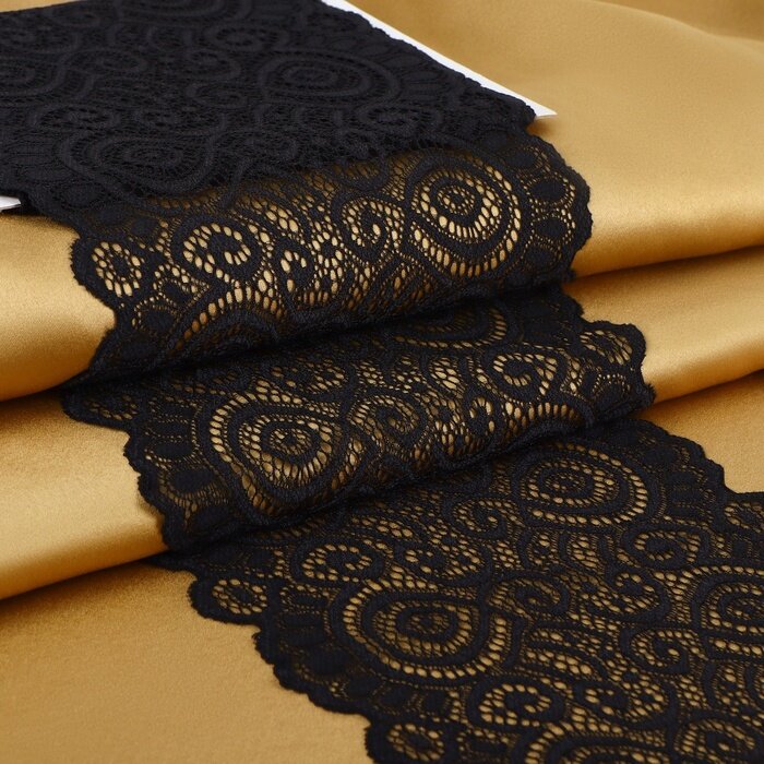 Кружевная эластичная ткань, 180 мм × 2,7 ± 0,5 м, цвет чёрный интересное:
