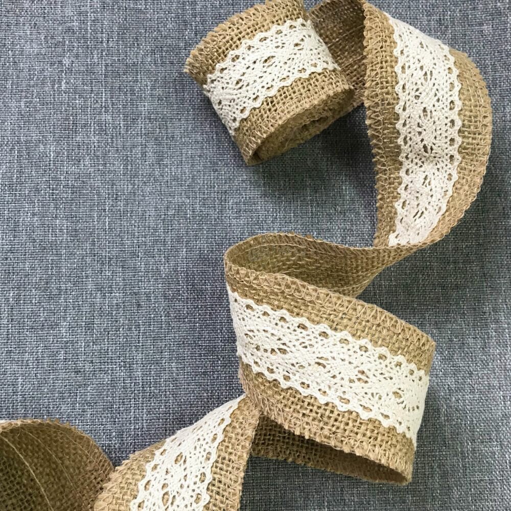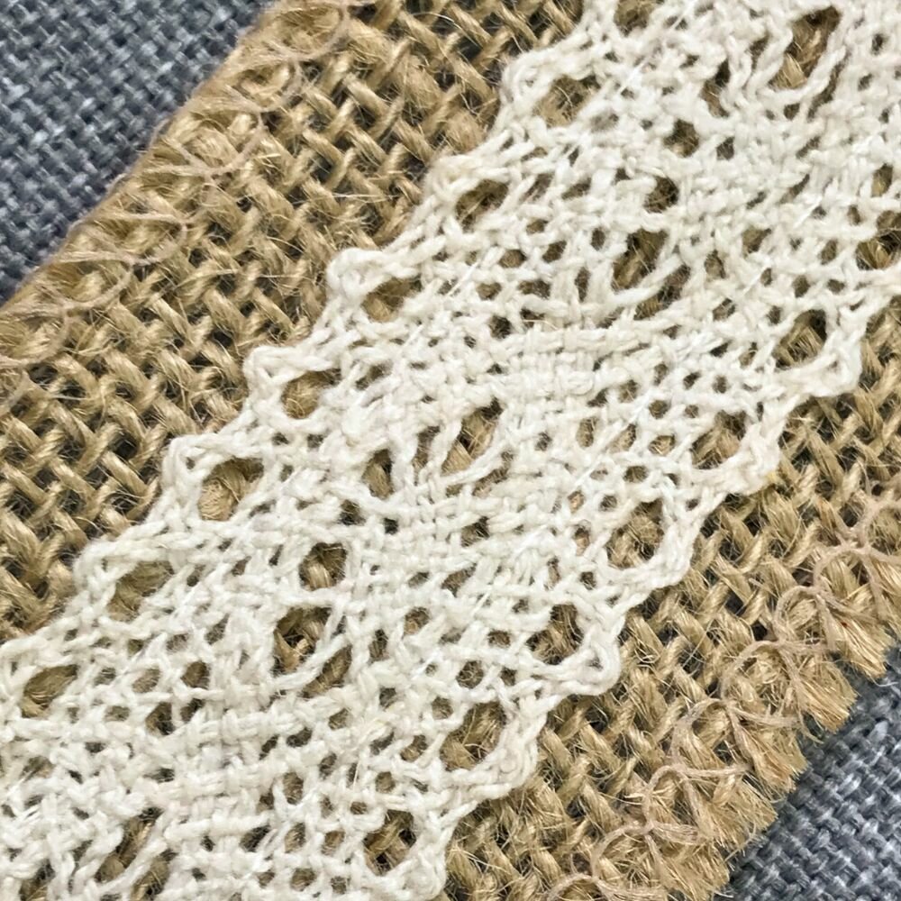 Купить Лента декоративная из джута/лента из мешковины/ тесьма из мешковина с кружевом, ширина 50 мм, длина 2 метра