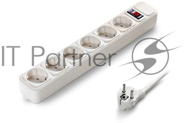 Сетевой фильтр ExeGate SP-6-5W (6 евророзетки с заземлением, 5м, защита от перегрузки, выключатель с подсветкой, белый) EX221229RUS