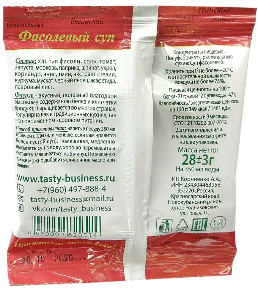 Фасолевый суп моментального приготовления, ИП Корниенко А.А (в наборе 14шт по 28г) интересное: