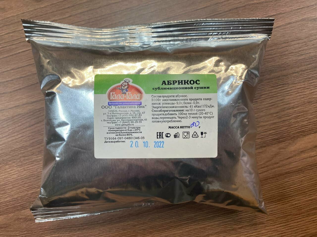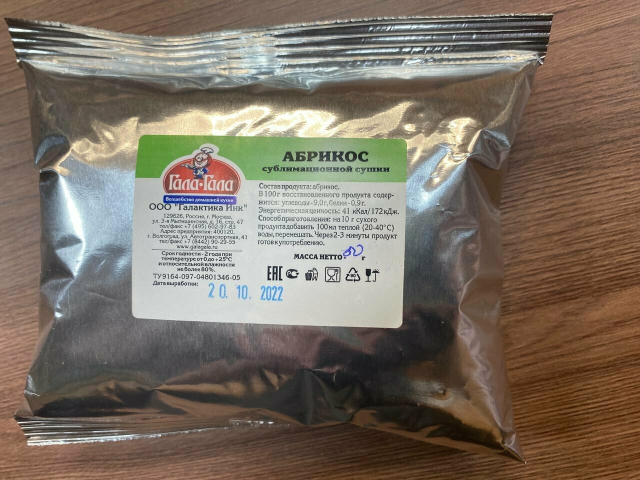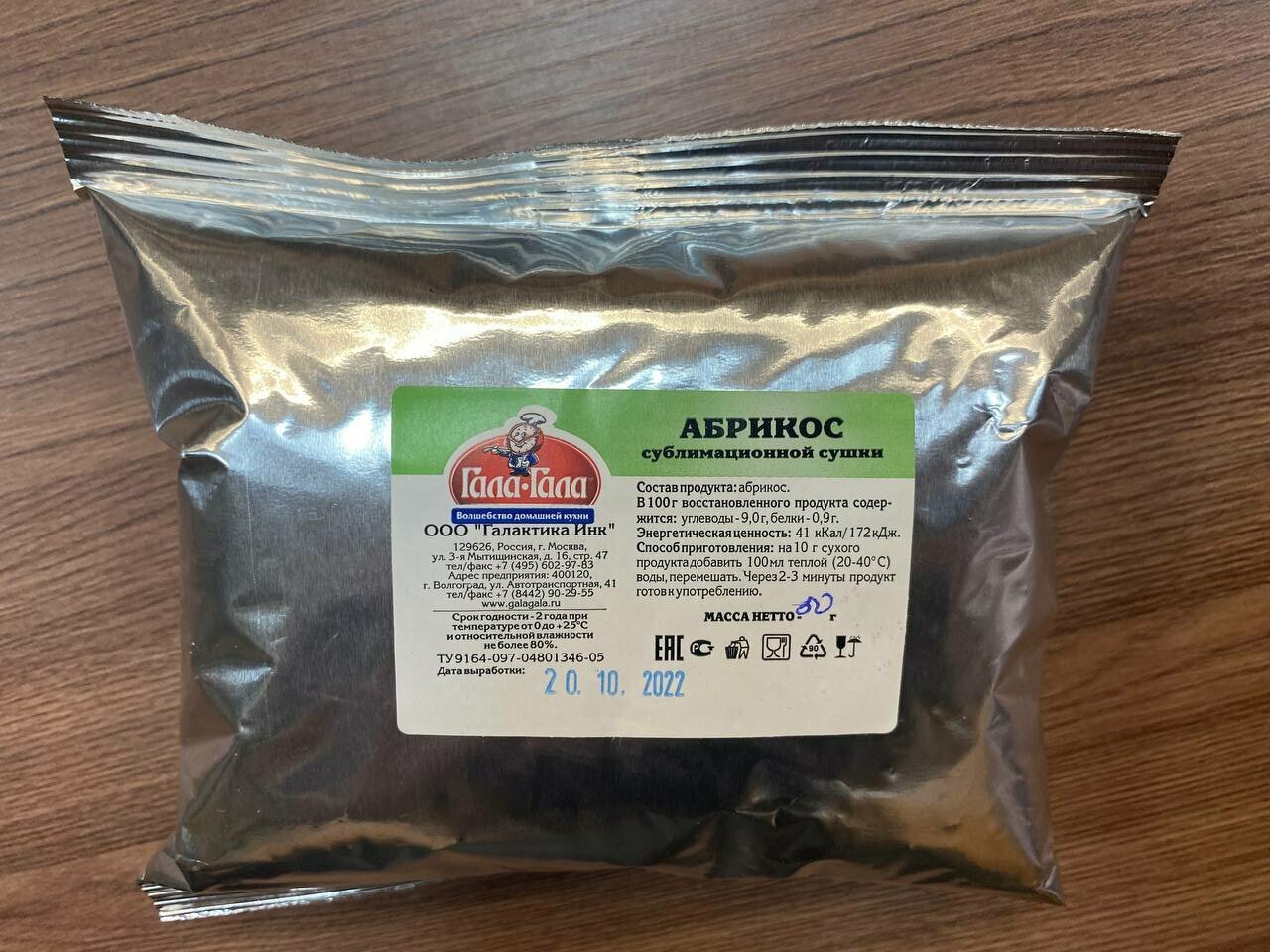 Купить "Гала-Гала" Абрикос 50 г. Блюдо быстрого приготовления, туристическая еда нового поколения.