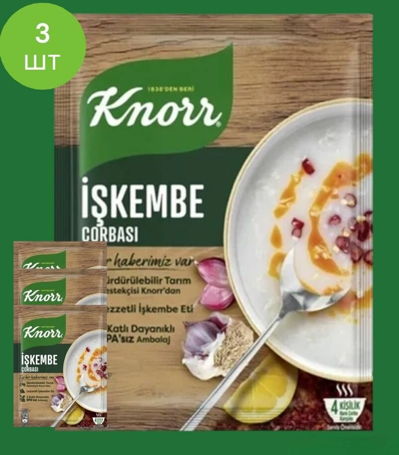 Купить Суп-пюре из говяжьего рубца KNORR 3 пакетика по 69гр. ( ISKEMBE CORBASI). Быстрого приготовления. Турция.