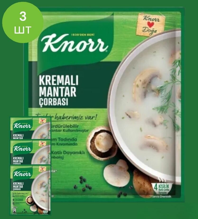 Купить Грибной суп-пюре KNORR 3 пакетика по 63гр. (KREMALI MANTAR CORBASI). Быстрого приготовления. Турция.