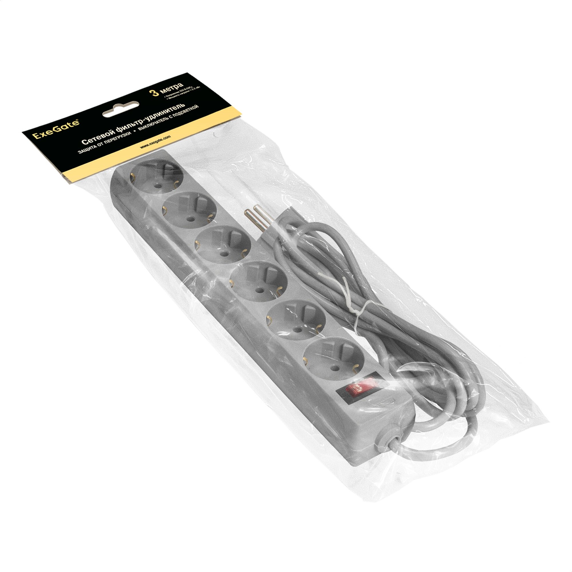 Сетевой фильтр ExeGate EX119392RUS SP-6-3G (6 розеток, 3м, евровилка, серый)