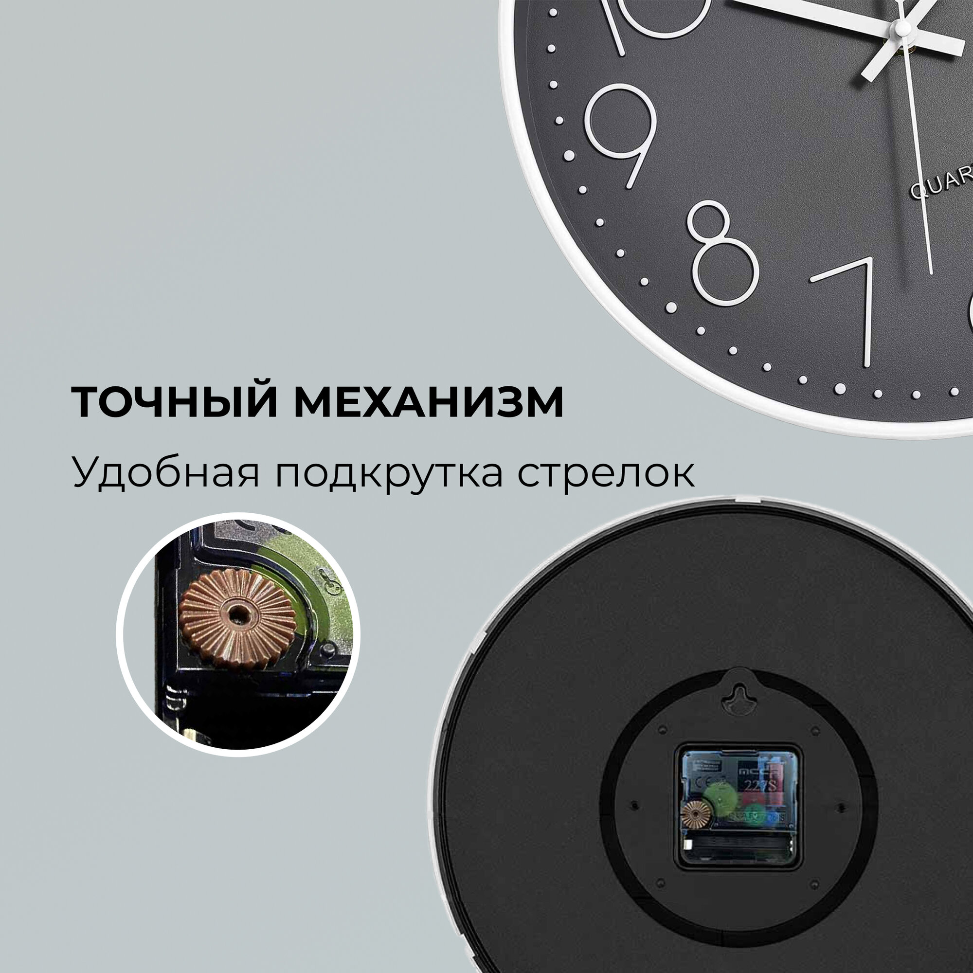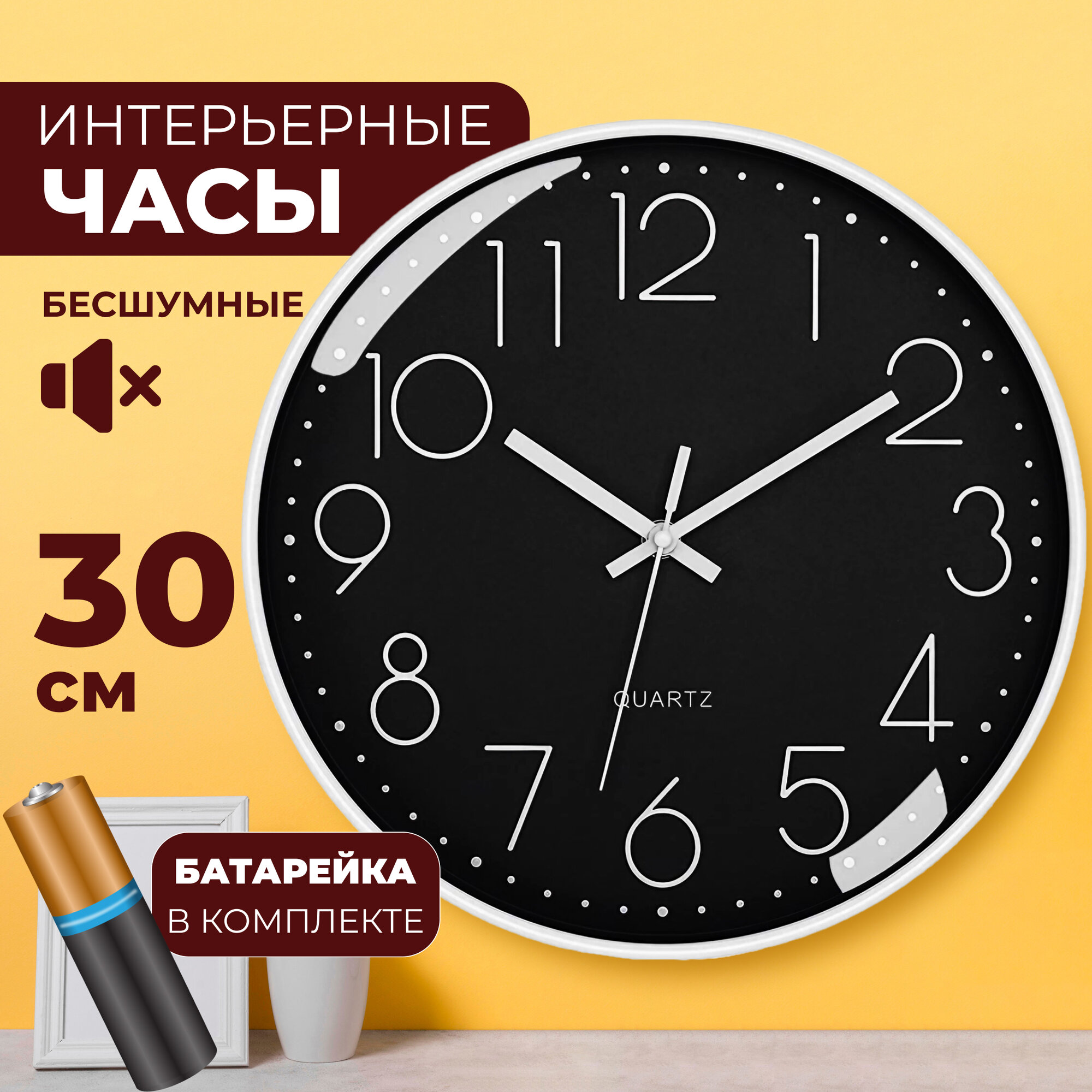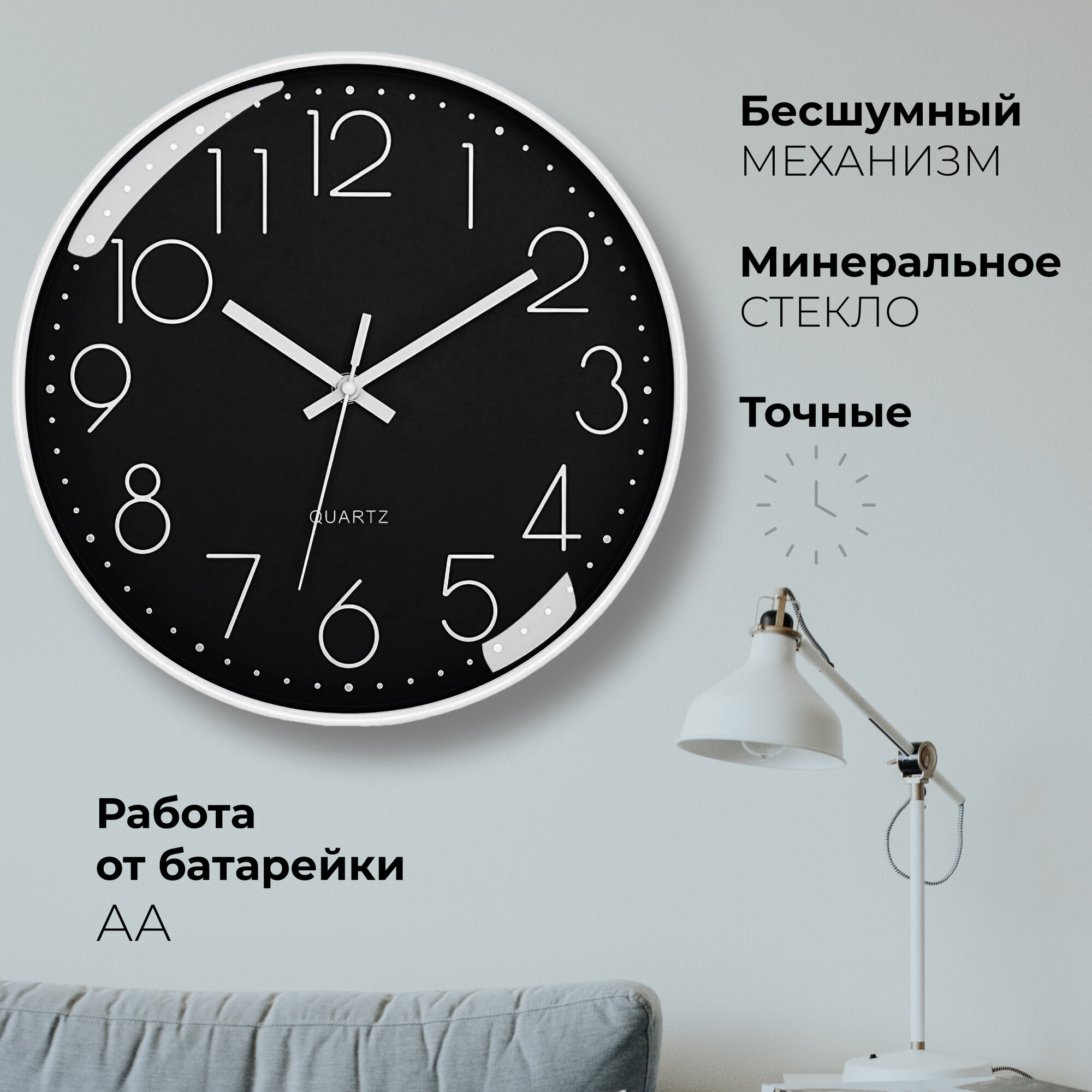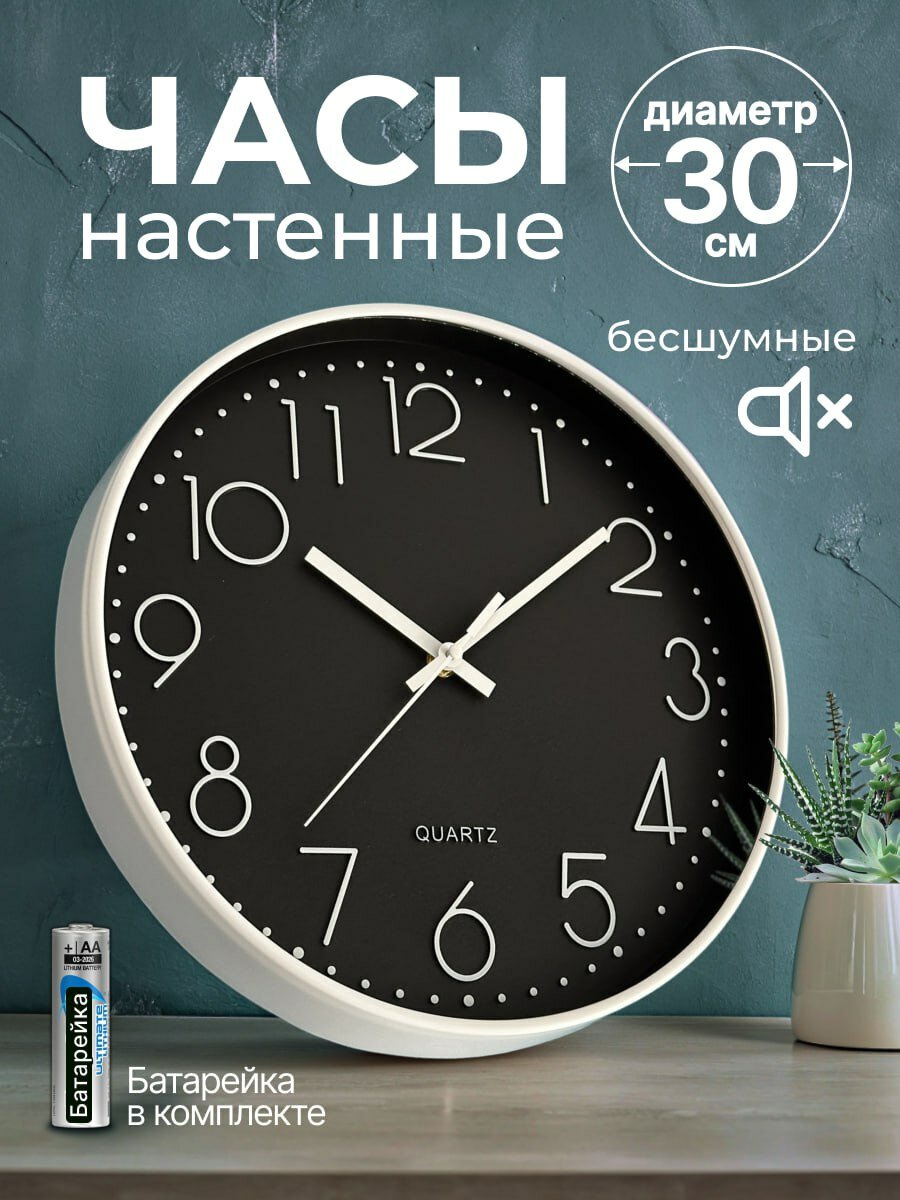 Настенные бесшумные кварцевые часы Smitton интерьерные 30 см с арабскими цифрами интересное: