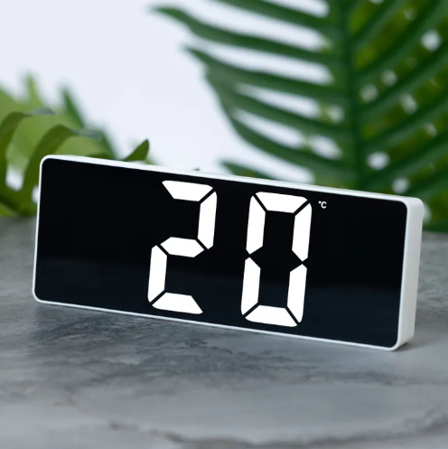 Электронные настольные часы с датчиком температуры, календарем и будильником / белый корпус - белые цифры интересное: