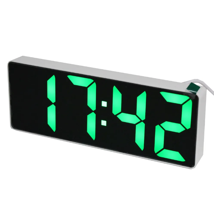Электронные настольные часы с датчиком температуры, календарем и будильником / белый корпус - зеленые цифры интересное: