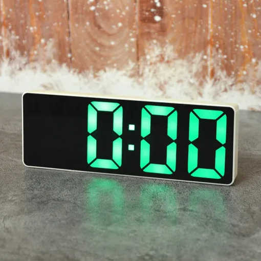 Купить Электронные настольные часы с датчиком температуры, календарем и будильником / белый корпус - зеленые цифры