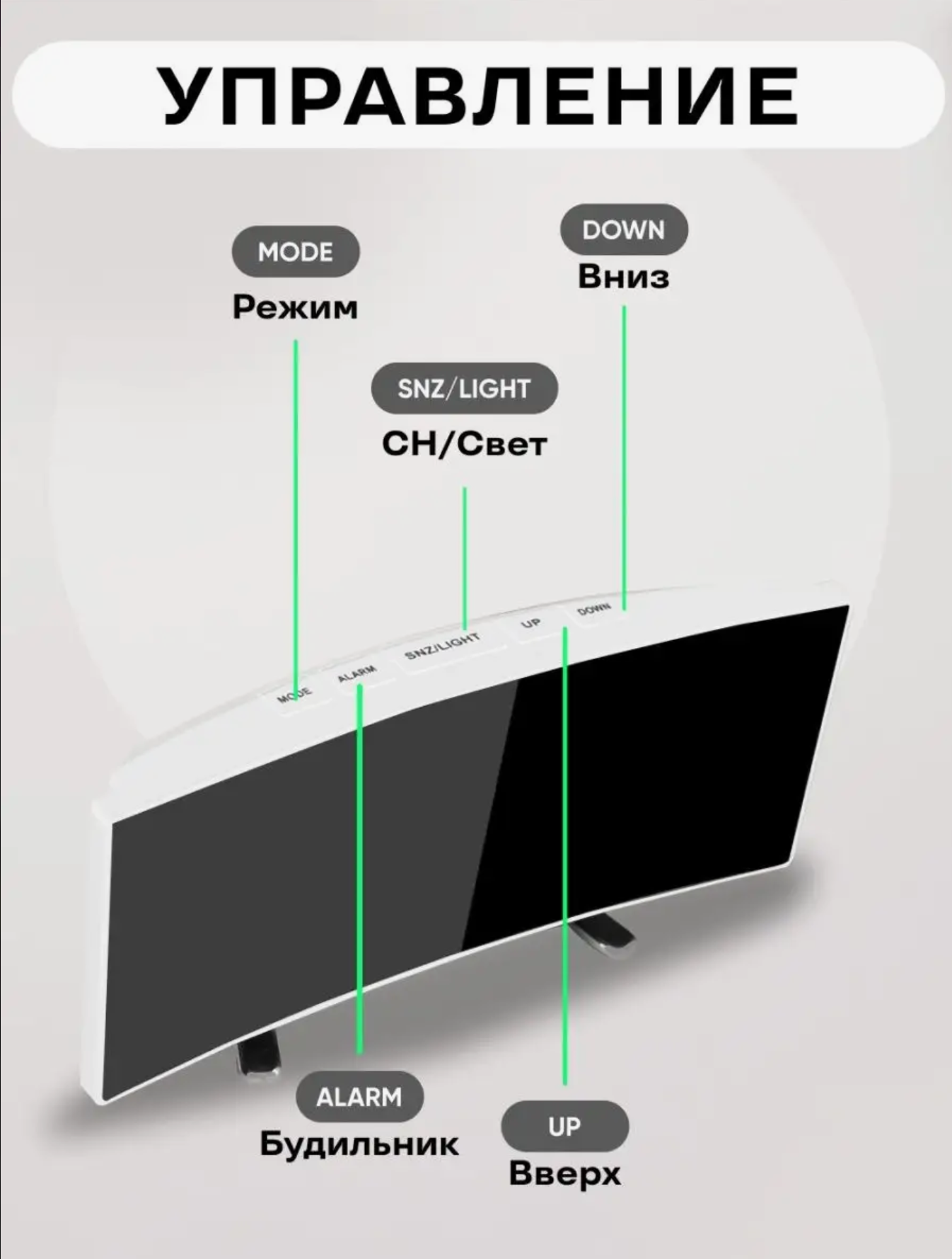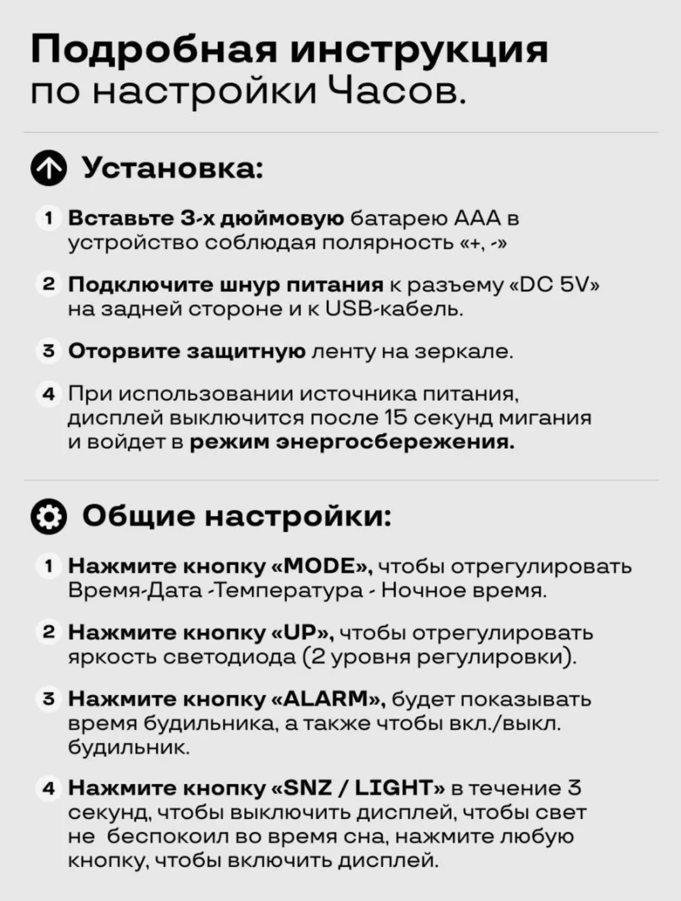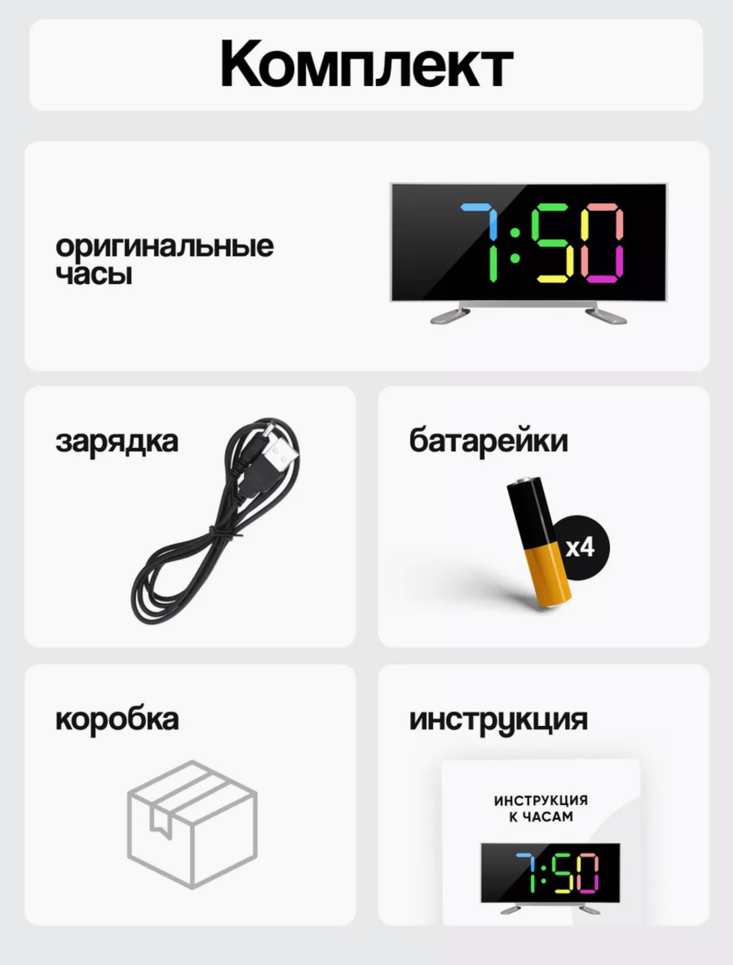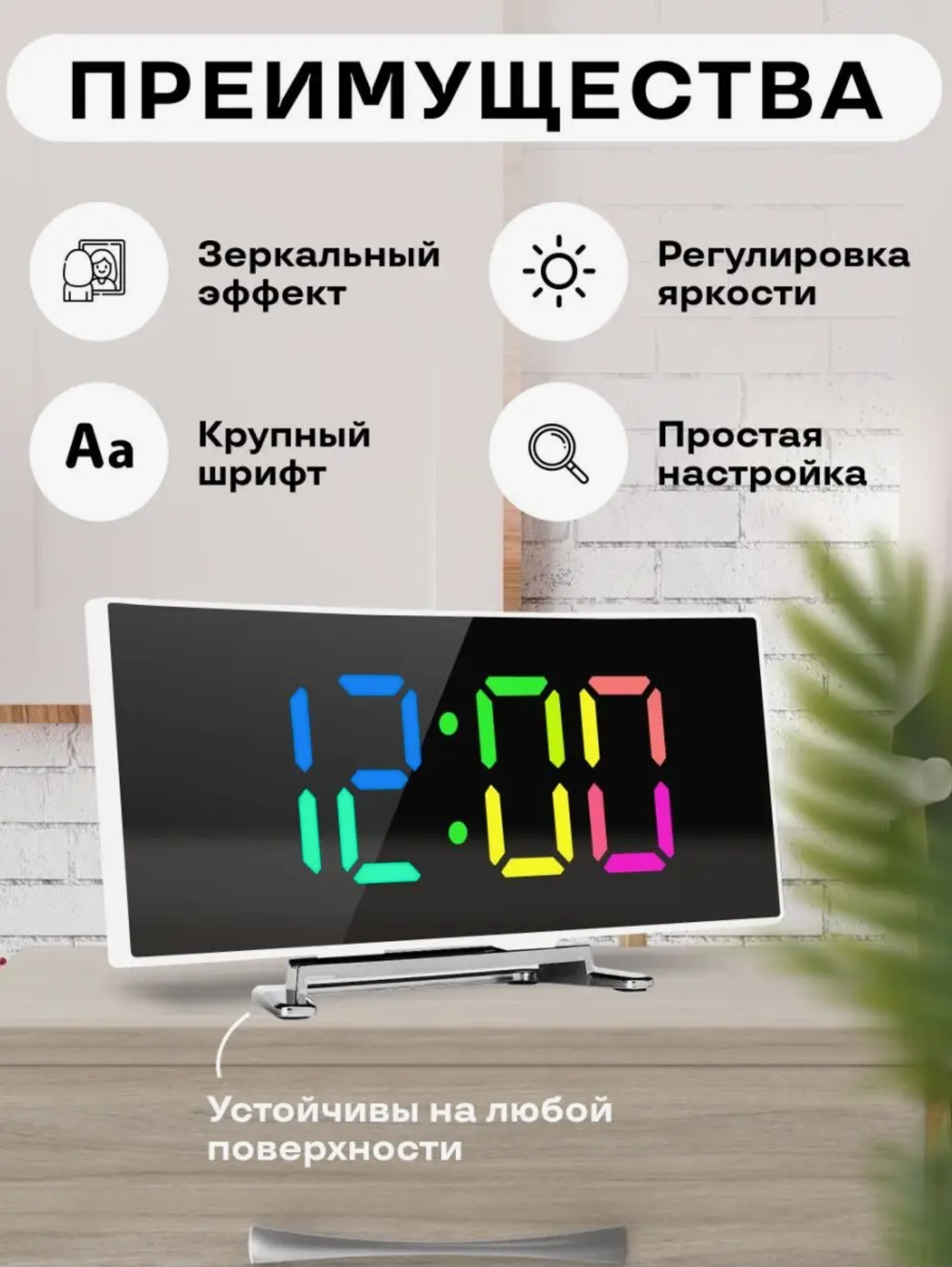 | Дополнительная информация | зеркальный светодиодный будильник, оснащен функциями автоматического измерения температуры, автоматического уменьшения яркости свечения ночью |