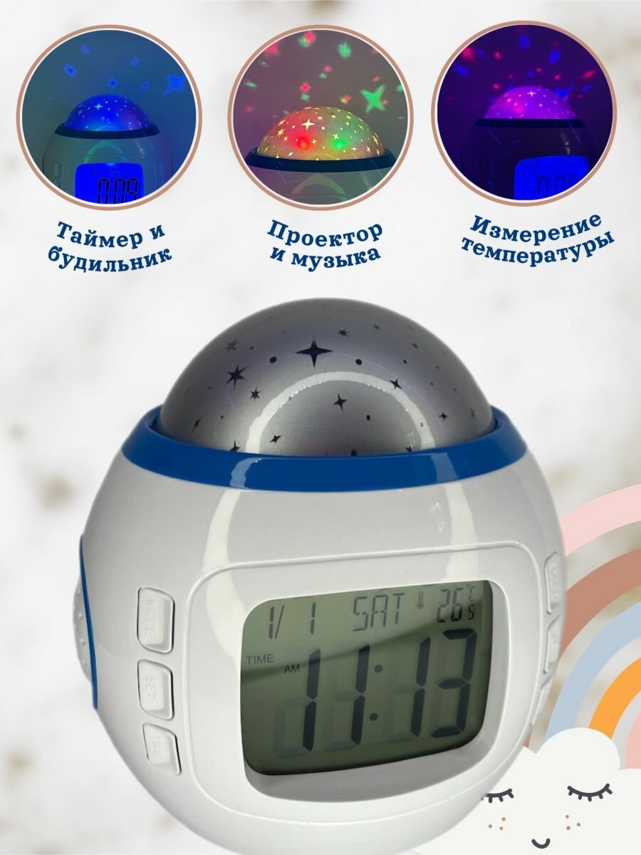 Будильник "Звездное небо", часы, 8 мелодий, белый интересное:
