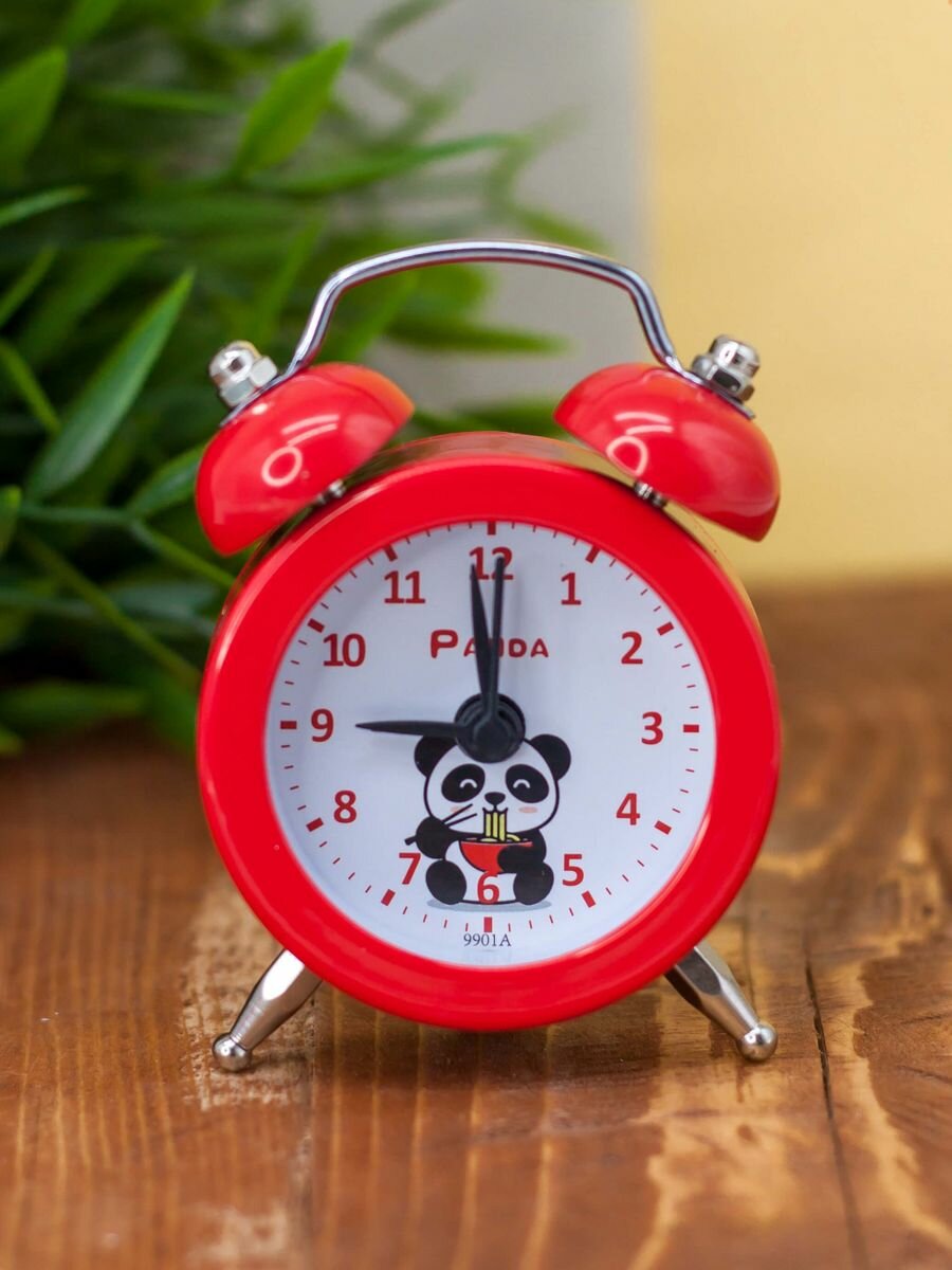 Купить Часы настольные с будильником Mini panda red