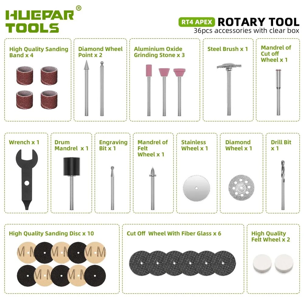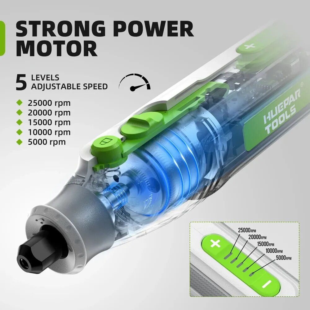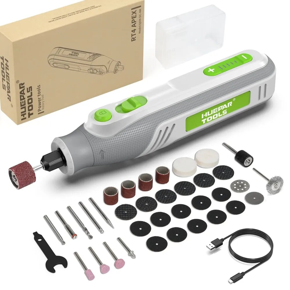 Купить Гравер аккумуляторный для полировки, шлифовки, гравировки Huepar Tools, 4V, 5 скоростей + набор из 36 насадок