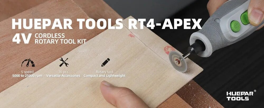 Гравер аккумуляторный для полировки, шлифовки, гравировки Huepar Tools, 4V, 5 скоростей + набор из 36 насадок интересное: