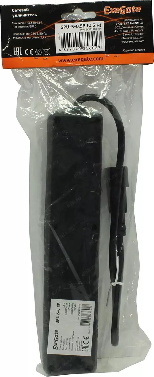 Купить Сетевой фильтр ExeGate 5 Sockets 0.5m SPU-5-0.5B Black 221200