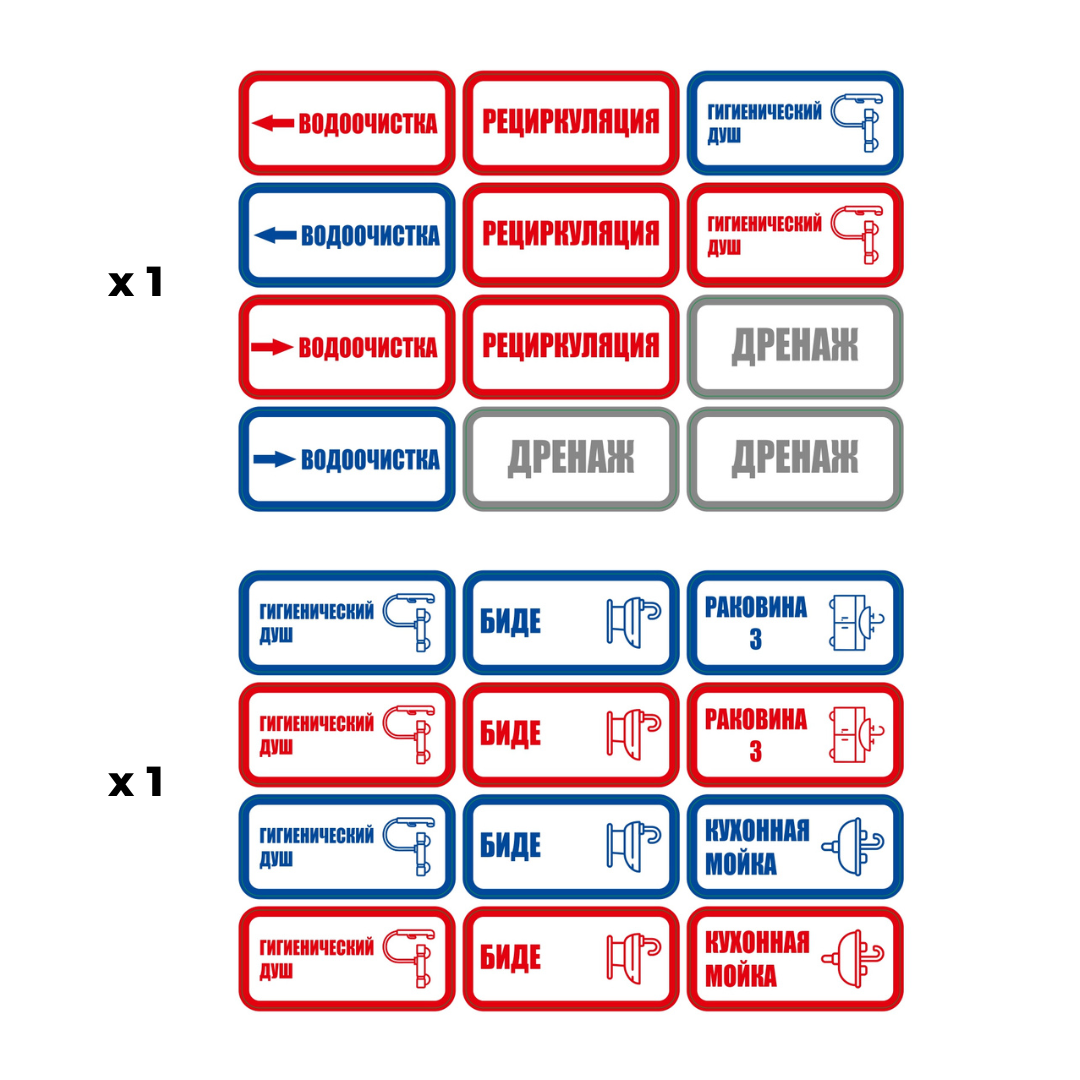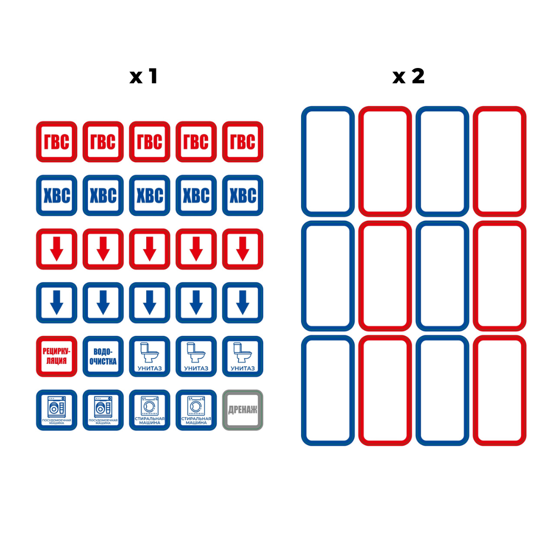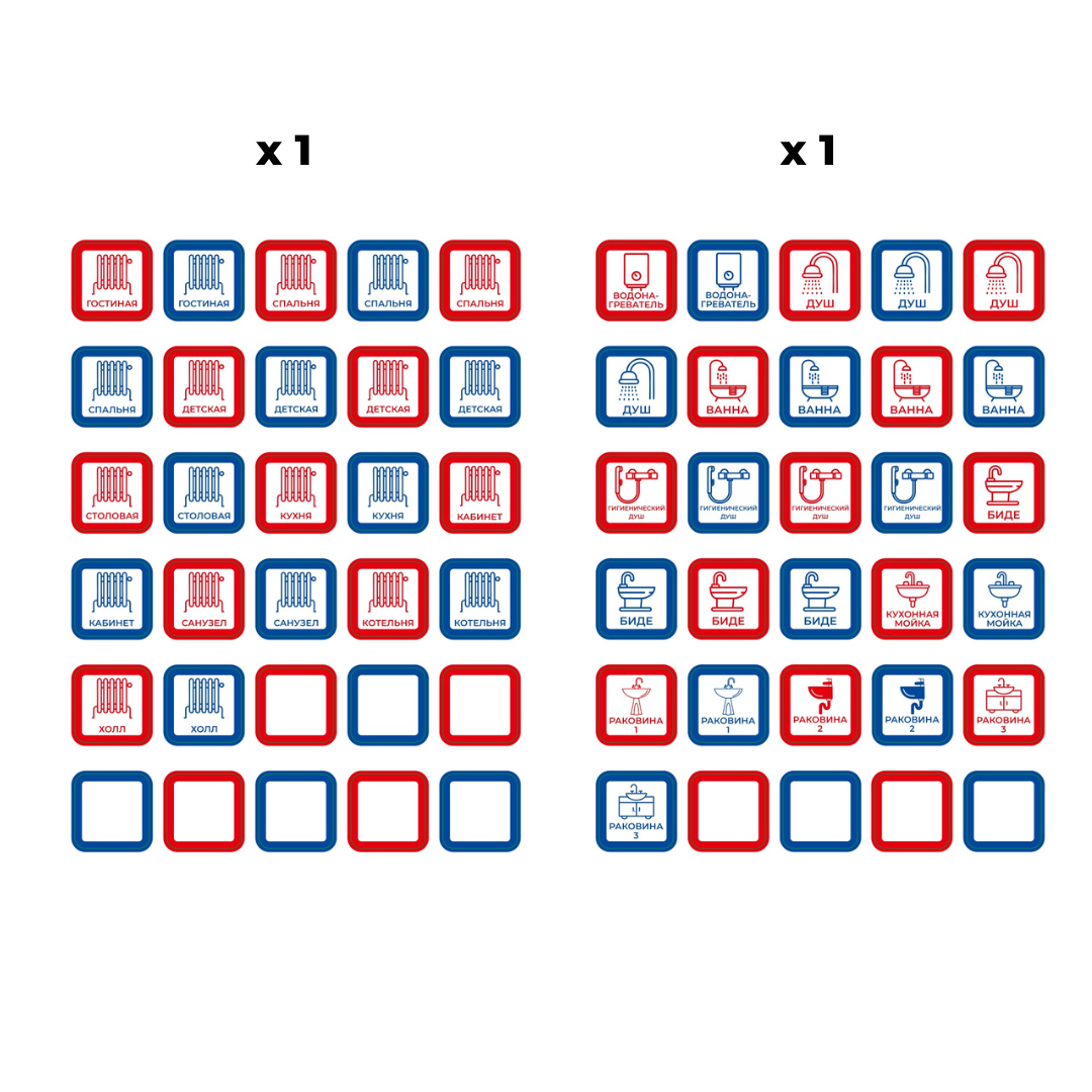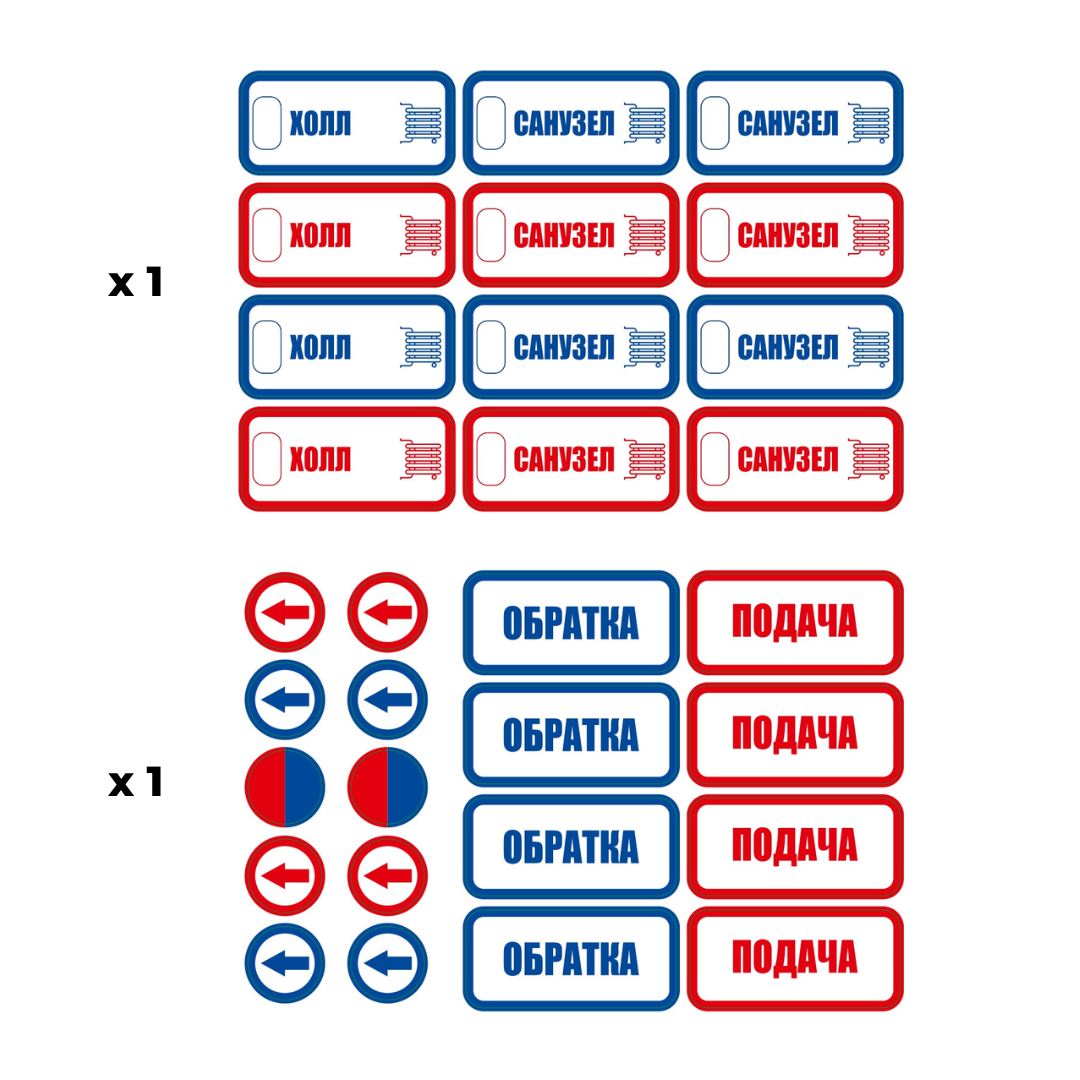 Комплект термостойких наклеек (374 шт) для сантехники, труб водоснабжения и отопления, А5, VDOMEVODA интересное: