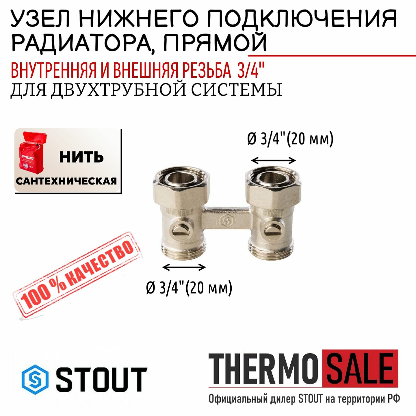Купить узел нижнего подключения радиатора STOUT прямой 3/4 в/н системы, прямой 3/4