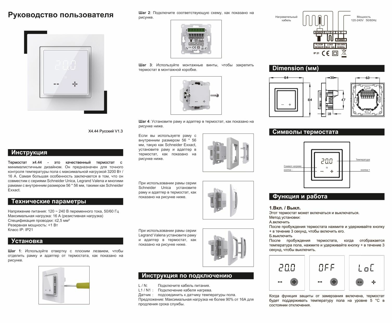 Терморегулятор/термостат программируемый X4.44 черный в рамки Schneider Electric Atlas Design интересное: