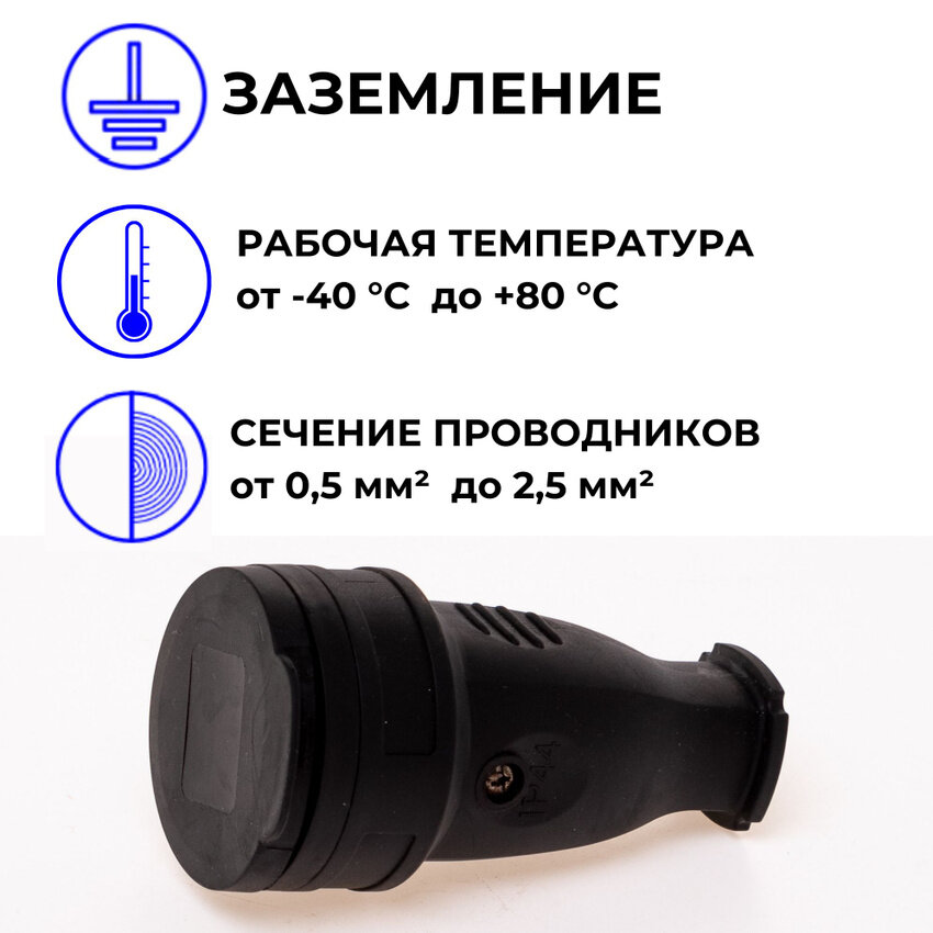 Вилка угловая однофазная с ушком каучук Elestaroro