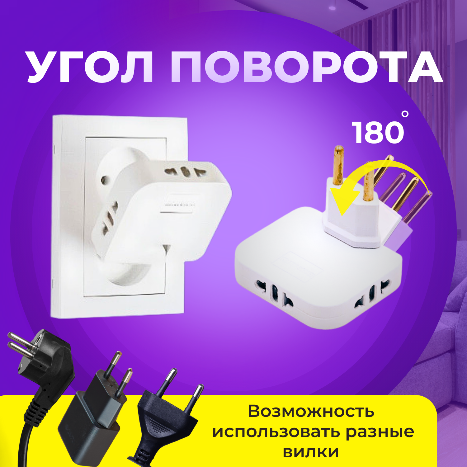 Плоский поворотный тройник GnP для розетки интересное: