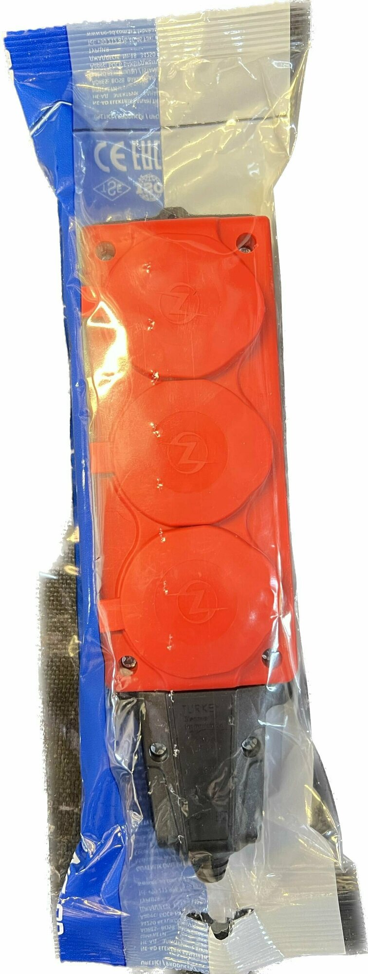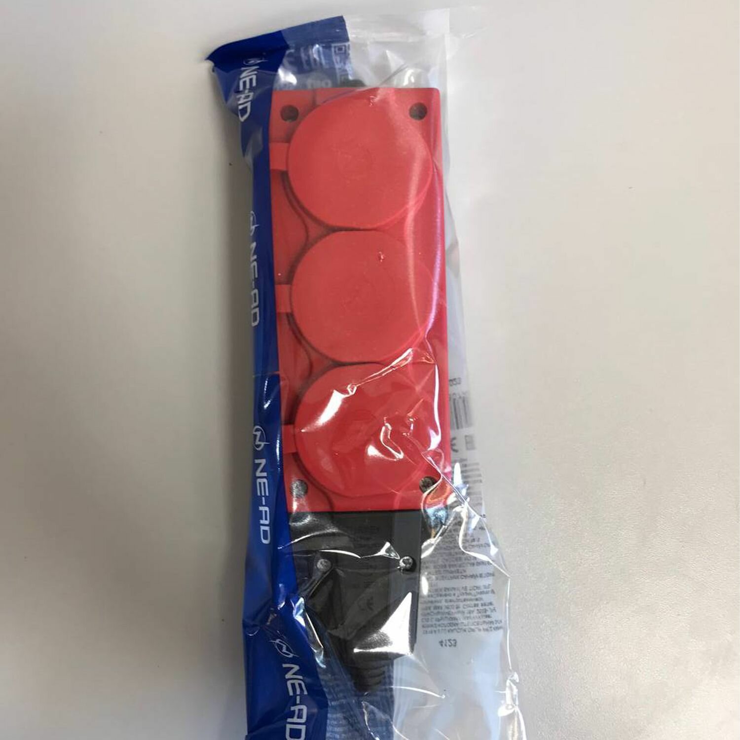 Колодка электрическая для удлинителя колодка трехместная NE-AD 3-нг с/з с крышками 16А, IP54, синий/черный (каучук)