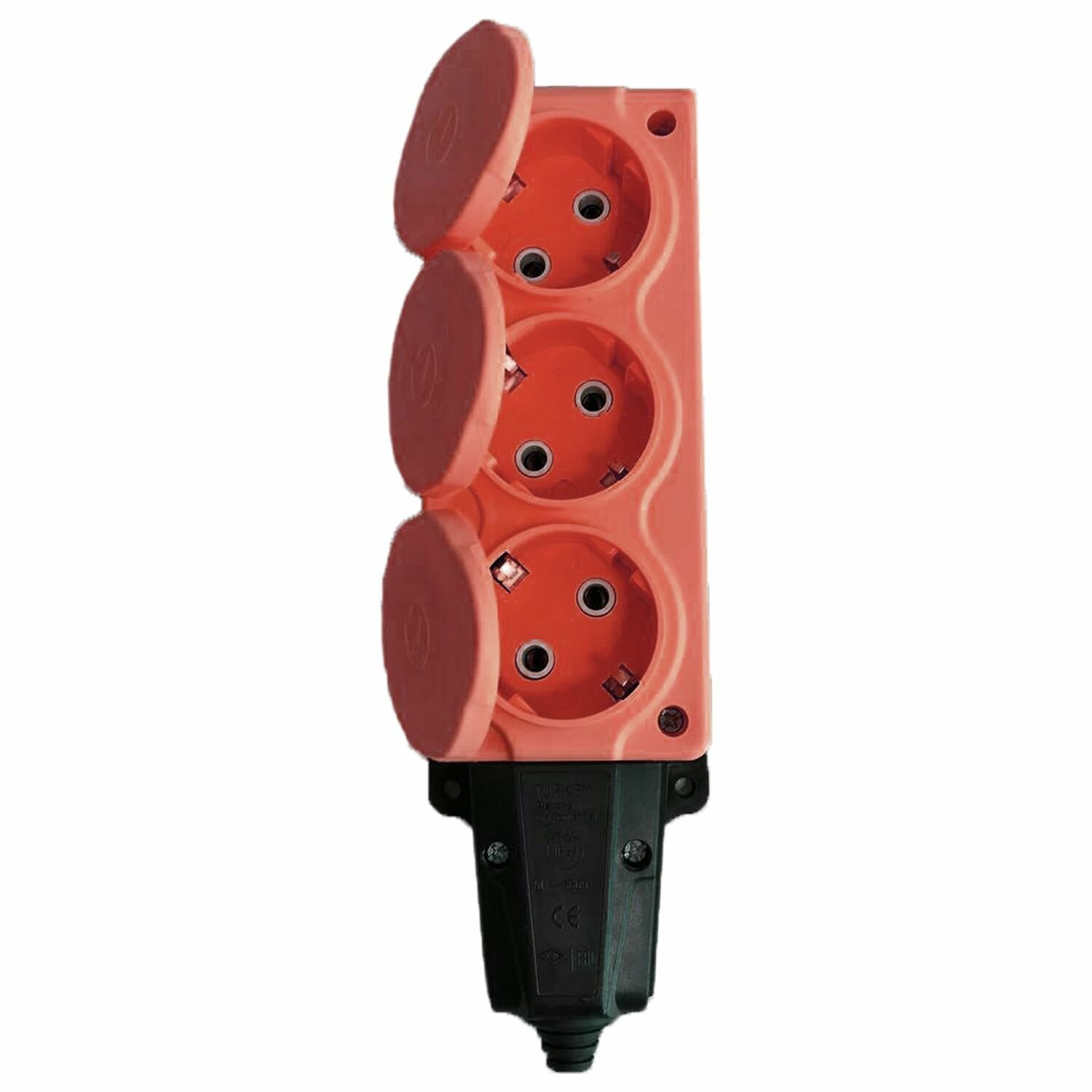 Колодка электрическая для удлинителя колодка тройная NE-AD 3-нг с/з с крышками 16А, IP54, оранжевый/черный (каучук)