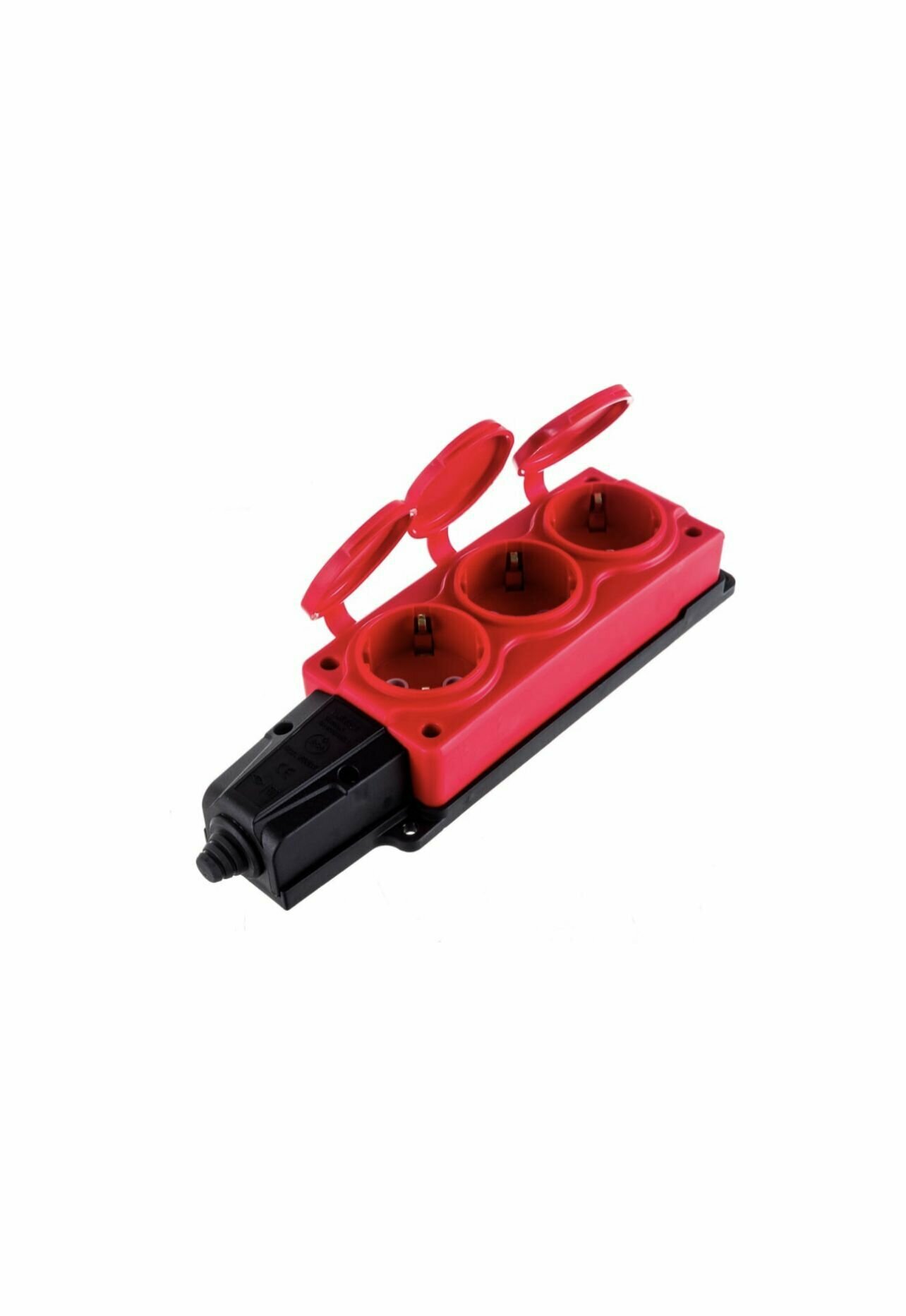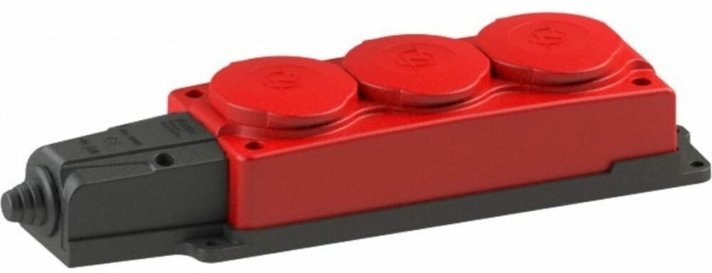 Колодка штепсельная NE-AD 3 гнезда 16А с крышками с/з IP54 каучук красный