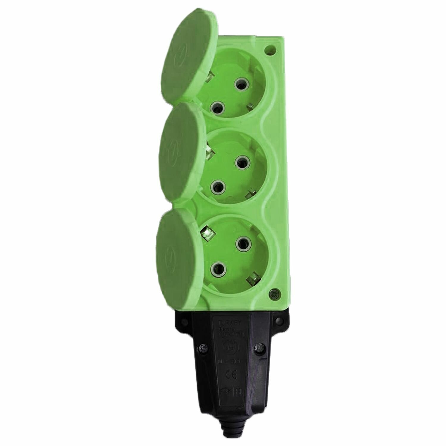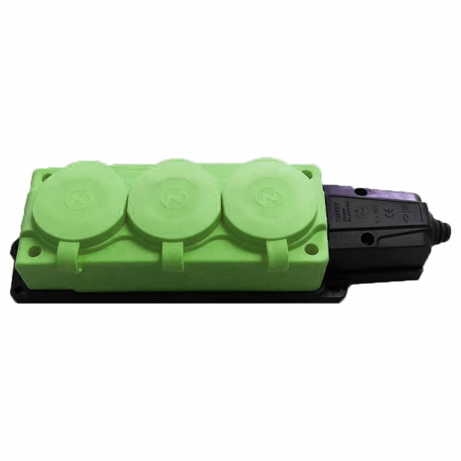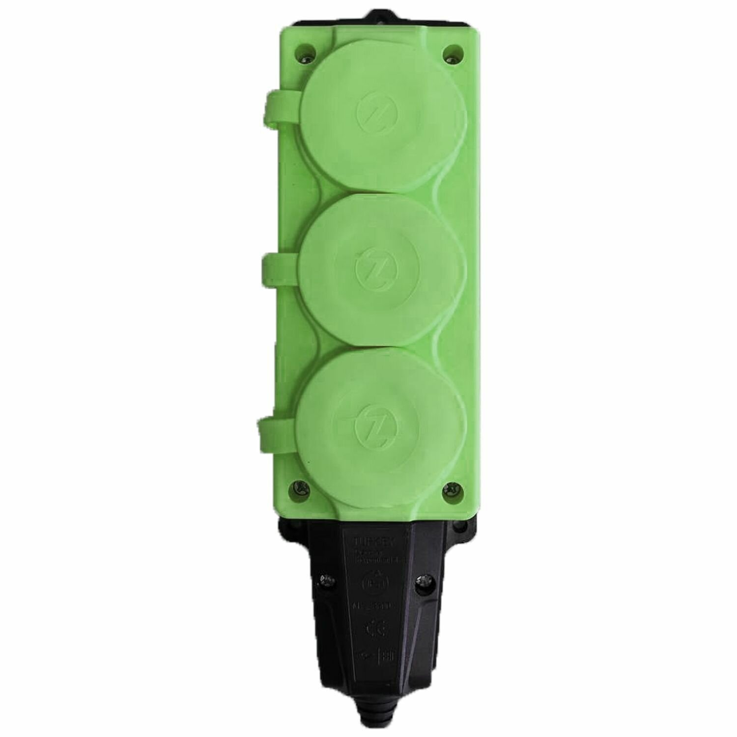Купить Колодка электрическая для удлинителя колодка трехместная NE-AD 3-нг с/з с крышками 16А, IP54, зеленый/черный (каучук)