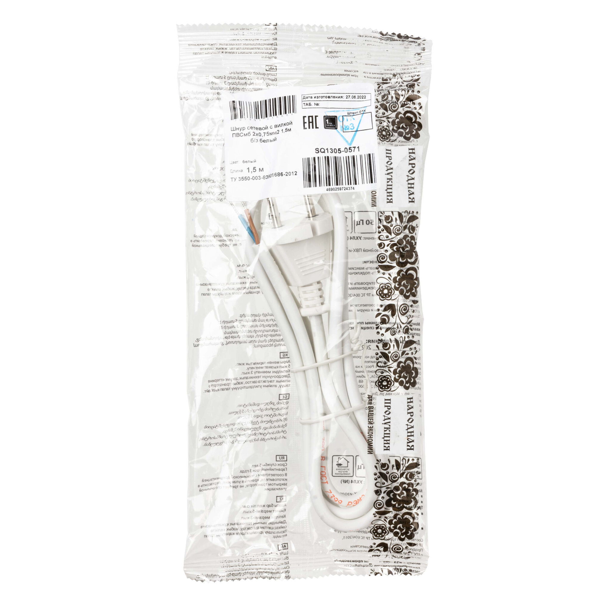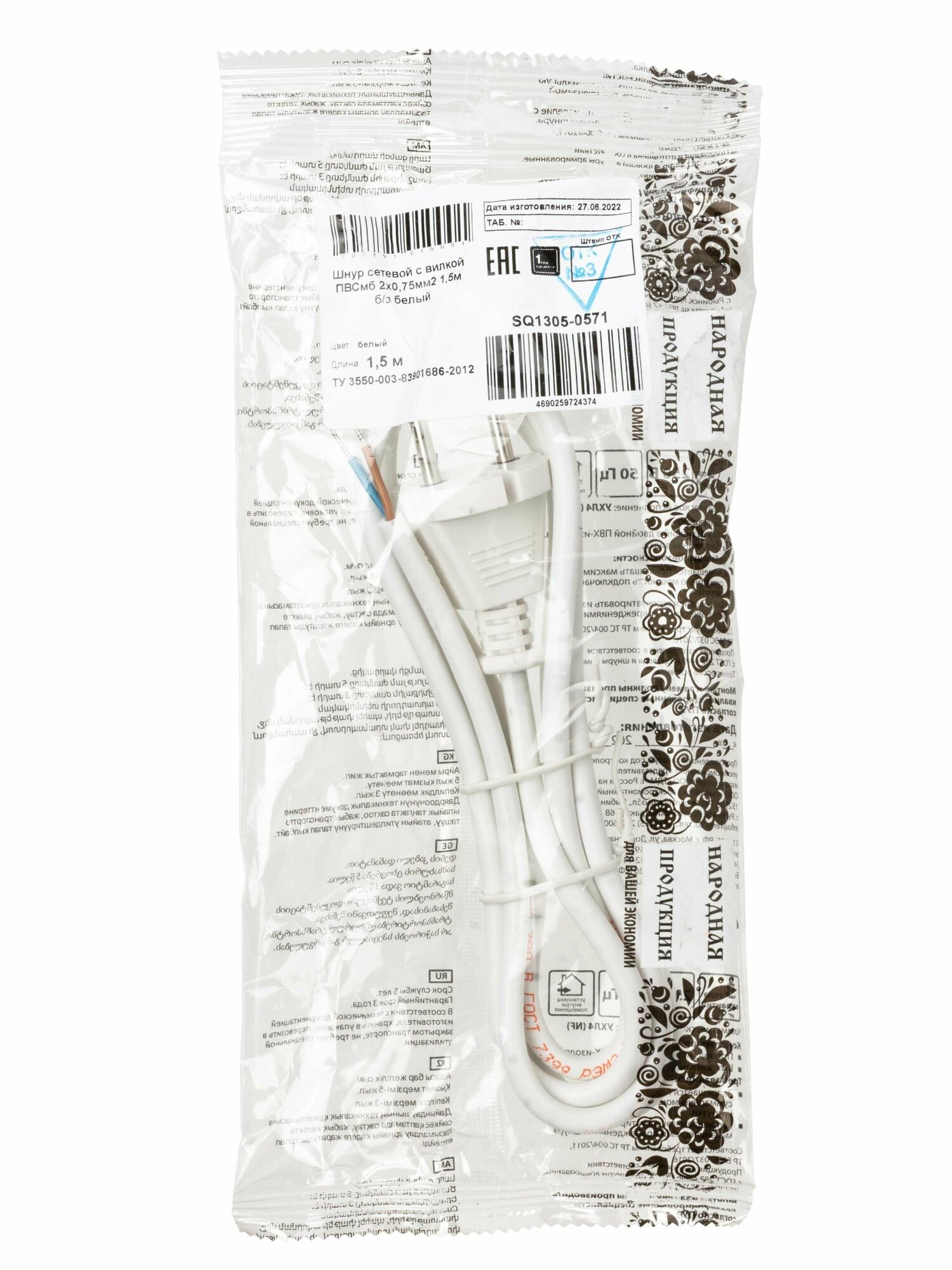 Шнур сетевой с вилкой ПВС 2x0,75мм2 1,5м б/з белый TDM интересное:
