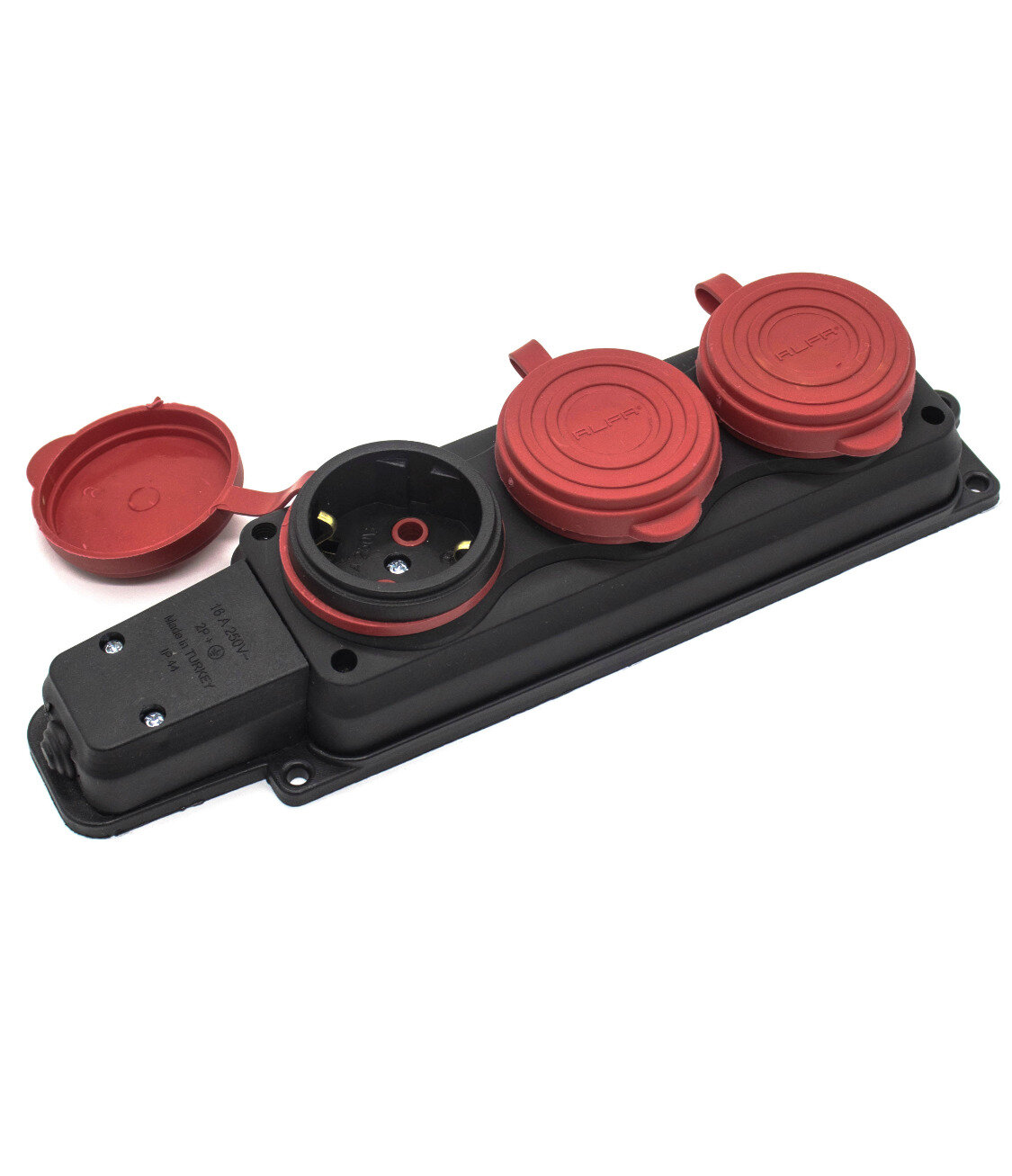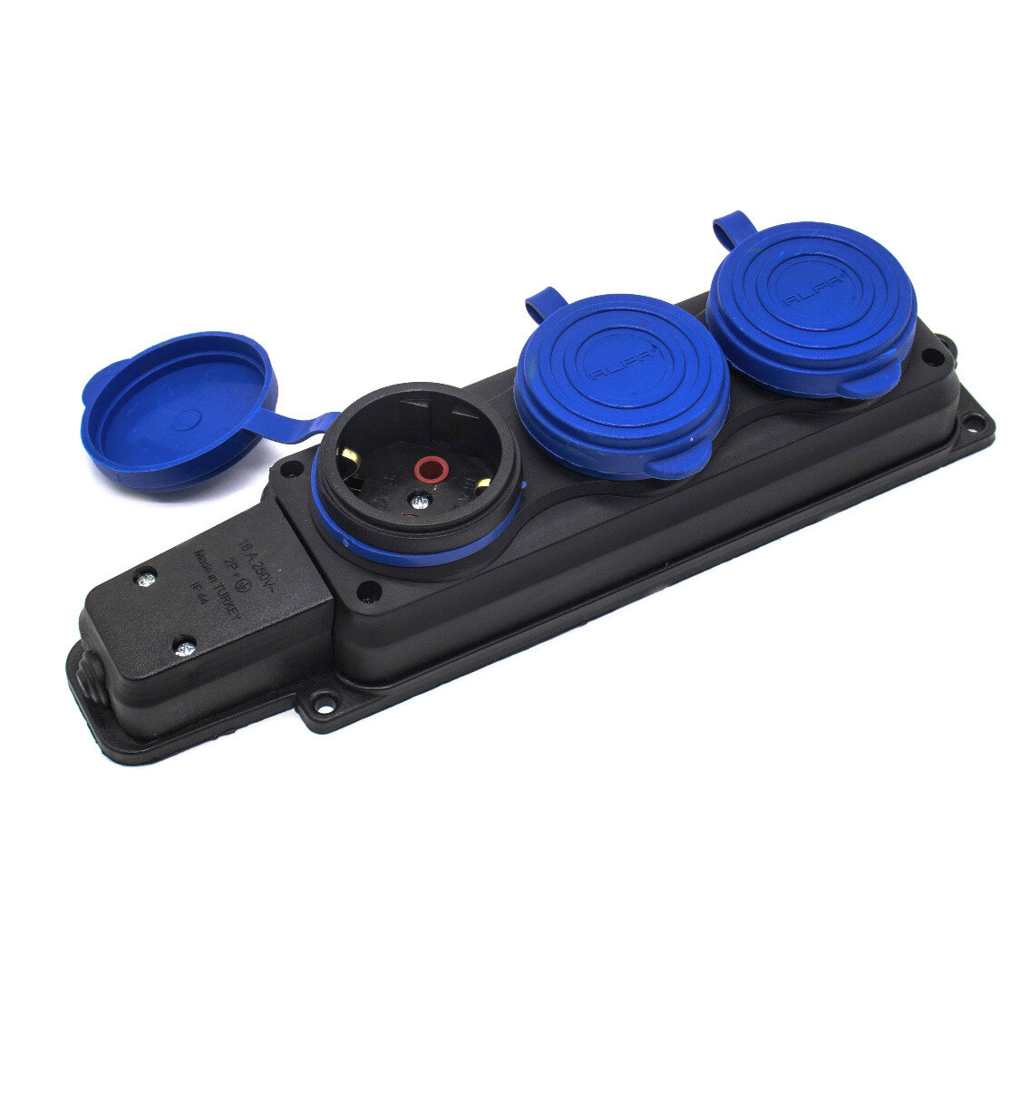 Тройник для розетки электрический с заземлением 16А, белый