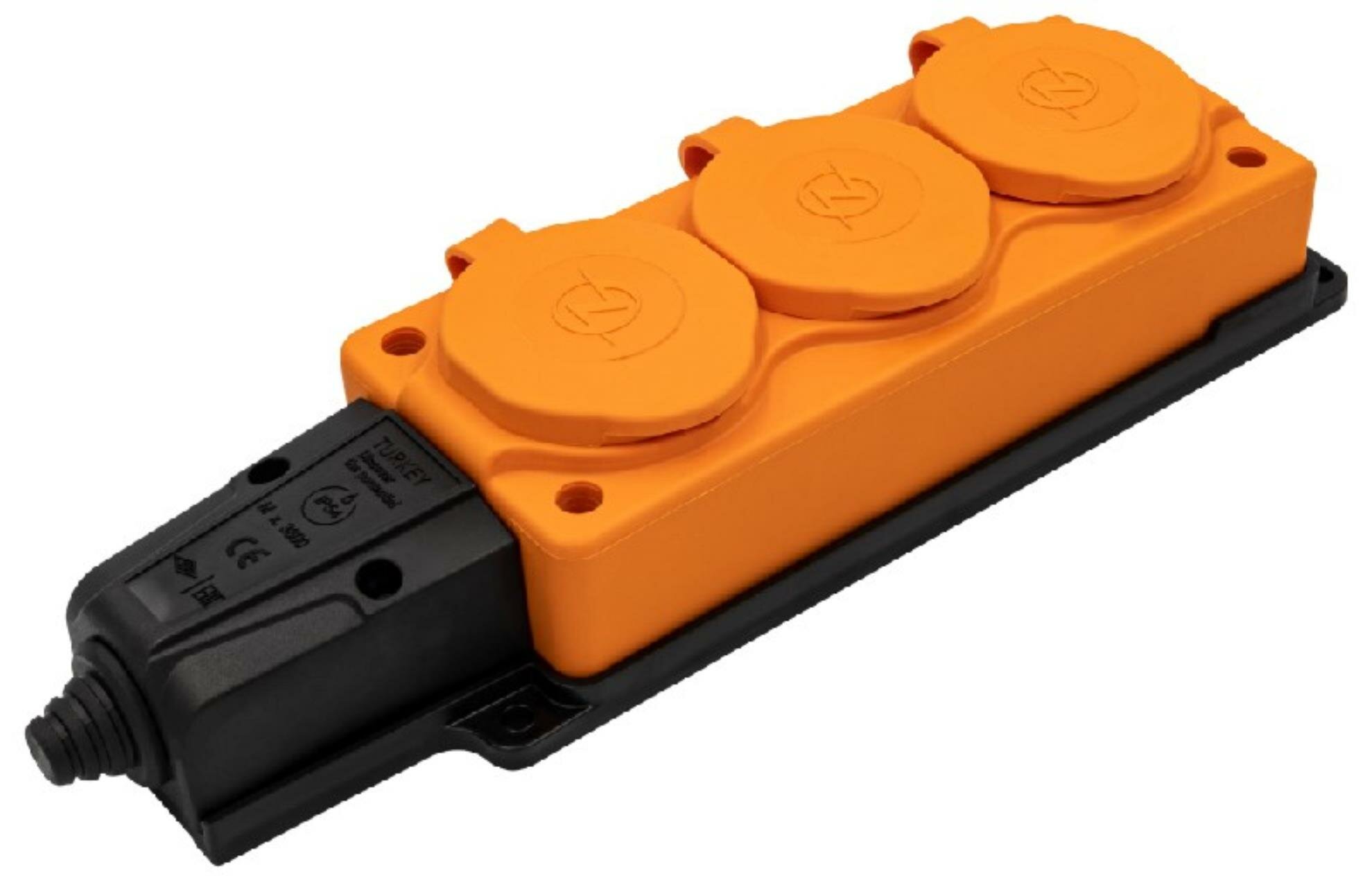 Колодка штепсельная NE-AD 3 гнезда с крышками, с заземлением, оранжевый черный, каучук интересное: