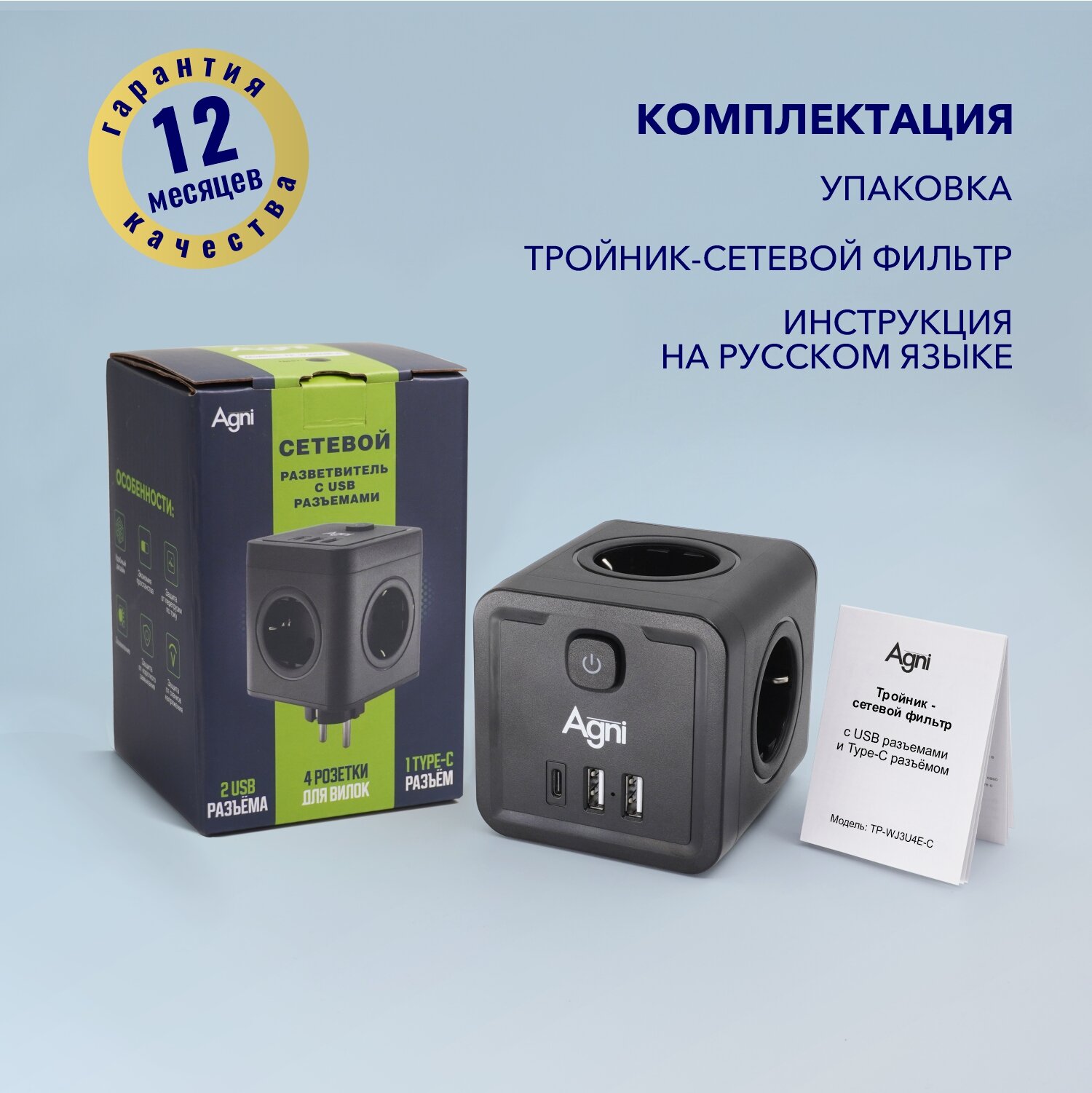 Ниже Вы можете прочитать отзывы на Разветвитель с защитой по типу сетевого фильтра AGNI тройник 4 розетки, 2 USB порта 2.4A, Type-C 20Вт (быстрая зарядка) заземление, шторками, 16A/4кВт(черный), ознакомится с подробными характеристиками, посмотреть интересные обзоры и фотографии на Разветвитель с защитой по типу сетевого фильтра AGNI тройник 4 розетки, 2 USB порта 2.4A, Type-C 20Вт (быстрая зарядка) заземление, шторками, 16A/4кВт(черный).