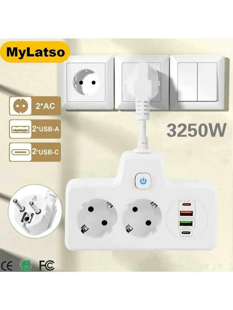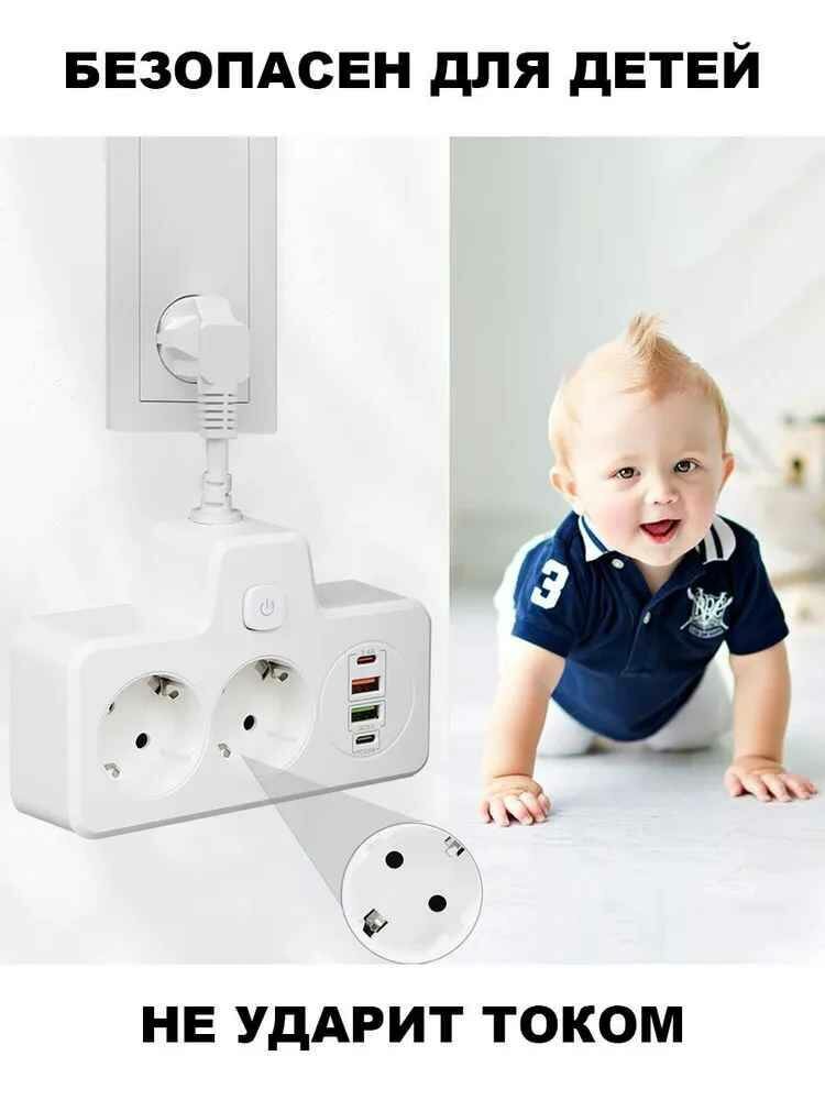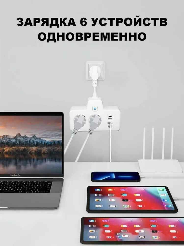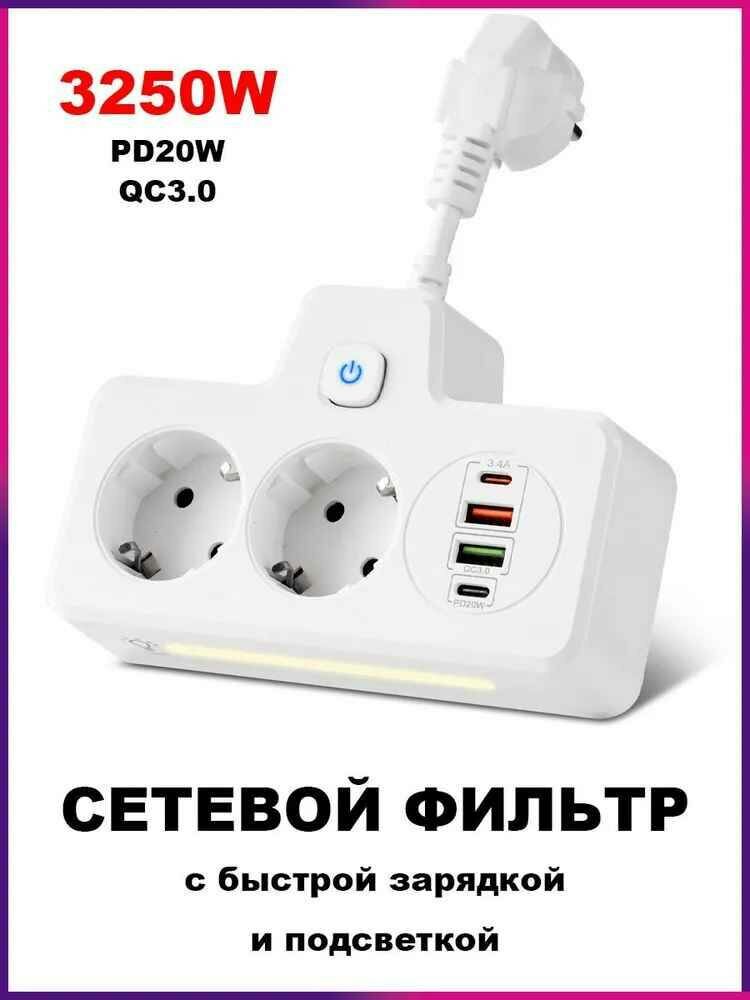 Сетевой фильтр, 4 розетки, 3 USB, 3 Type-C, 2 метра от GadFamily_Shop