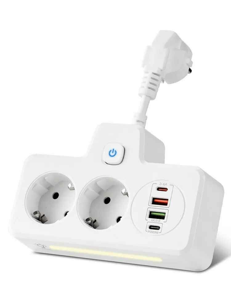 Сетевой фильтр, удлинитель с USB Type C портами, 2 метра кабель и 5 розеток, белый от GadFamily_Shop