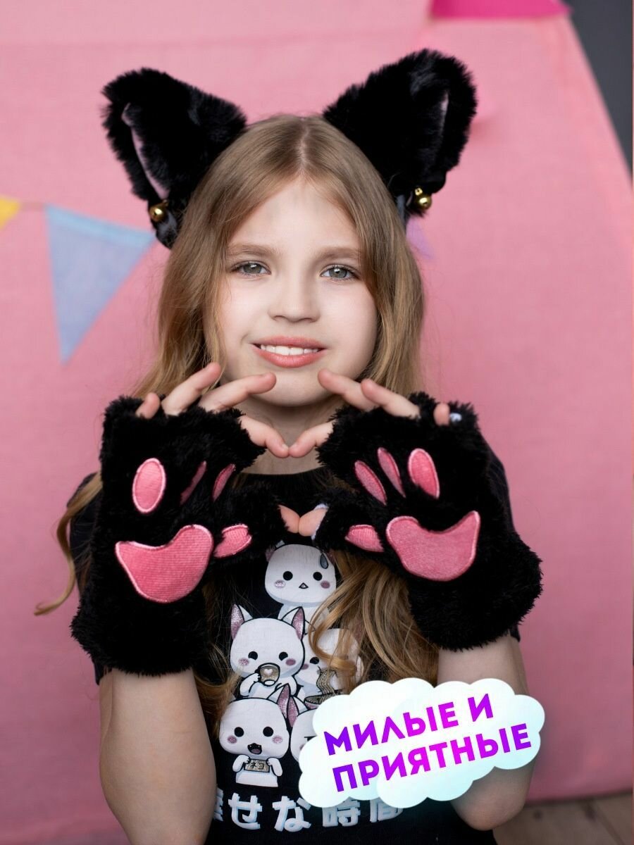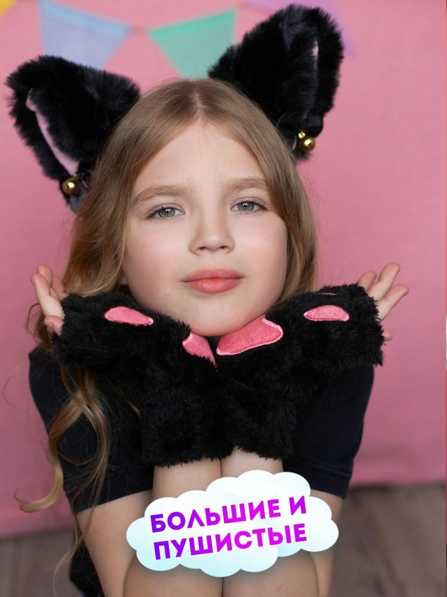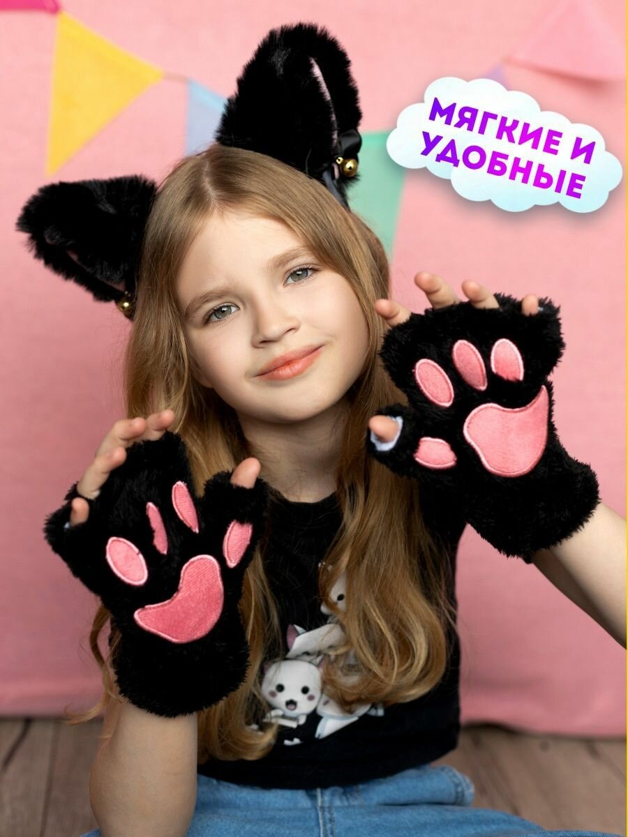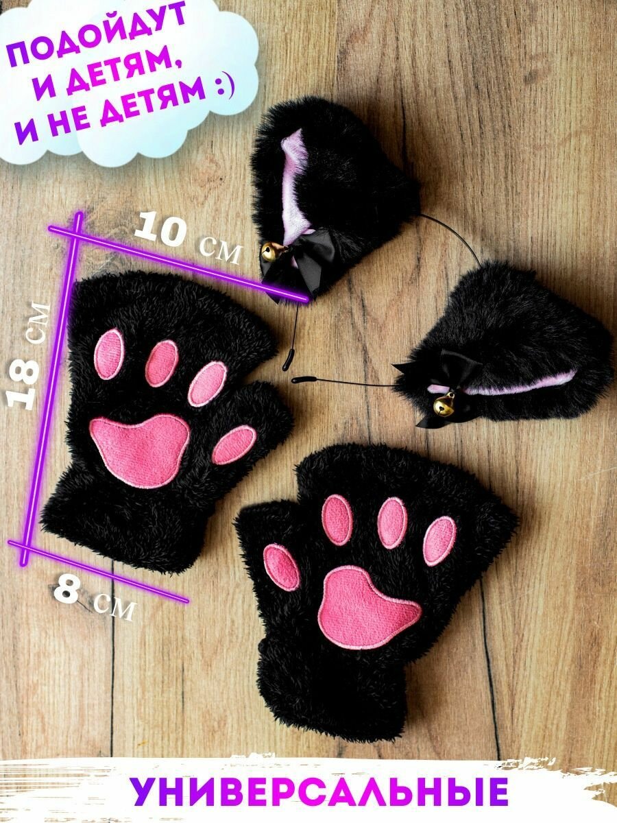 Перчатки без пальцев митенки, лапки кошки и ободок ушки кошки для квадробики